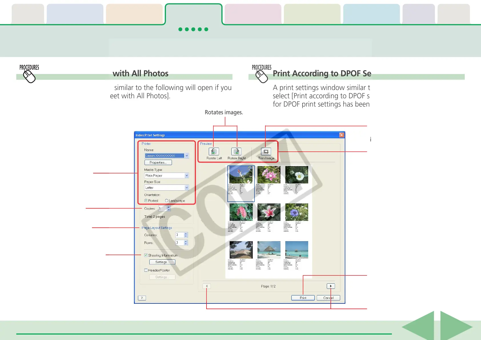 Print According to DPOF Settings—Index