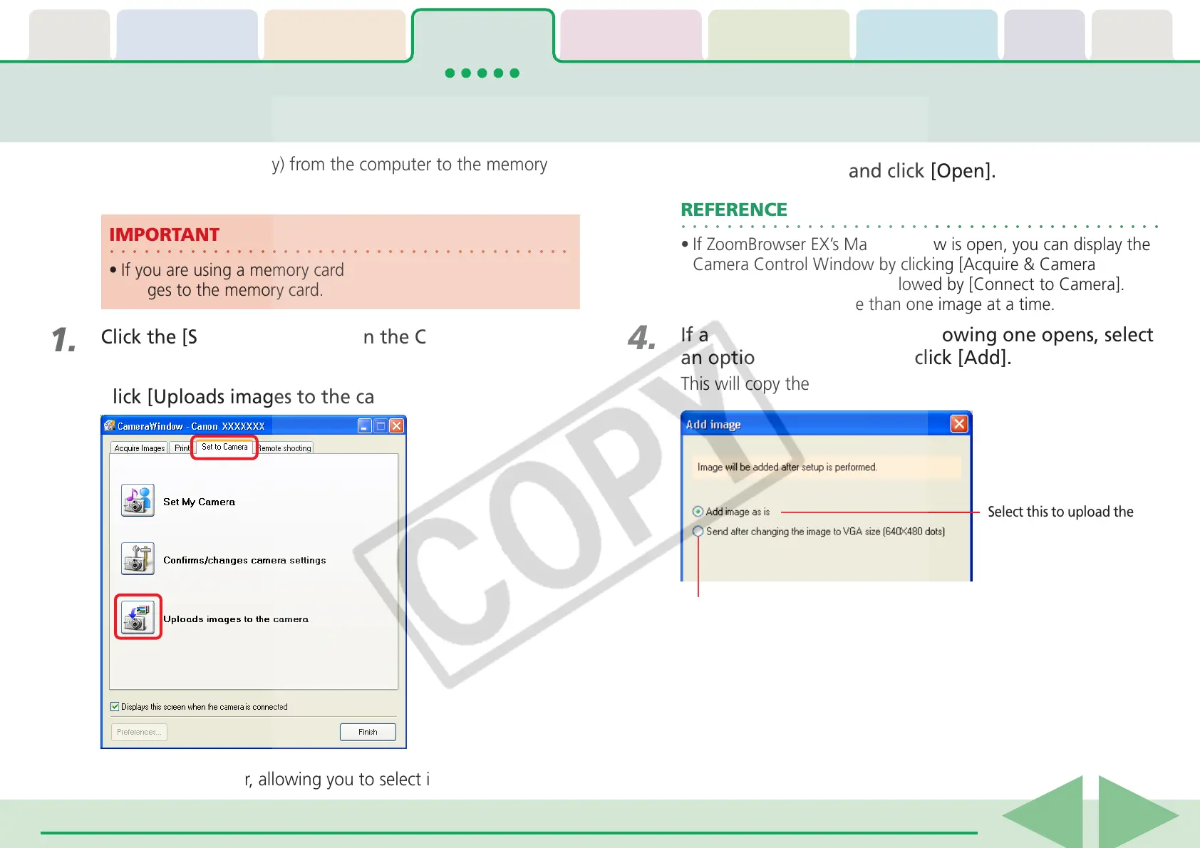 Copying Images to the Camera (1/2)