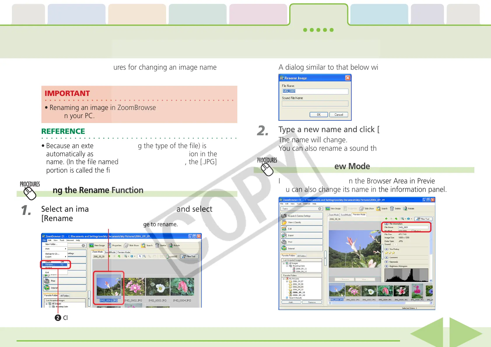 • Renaming an image in ZoomBrowser EX renames the actual
