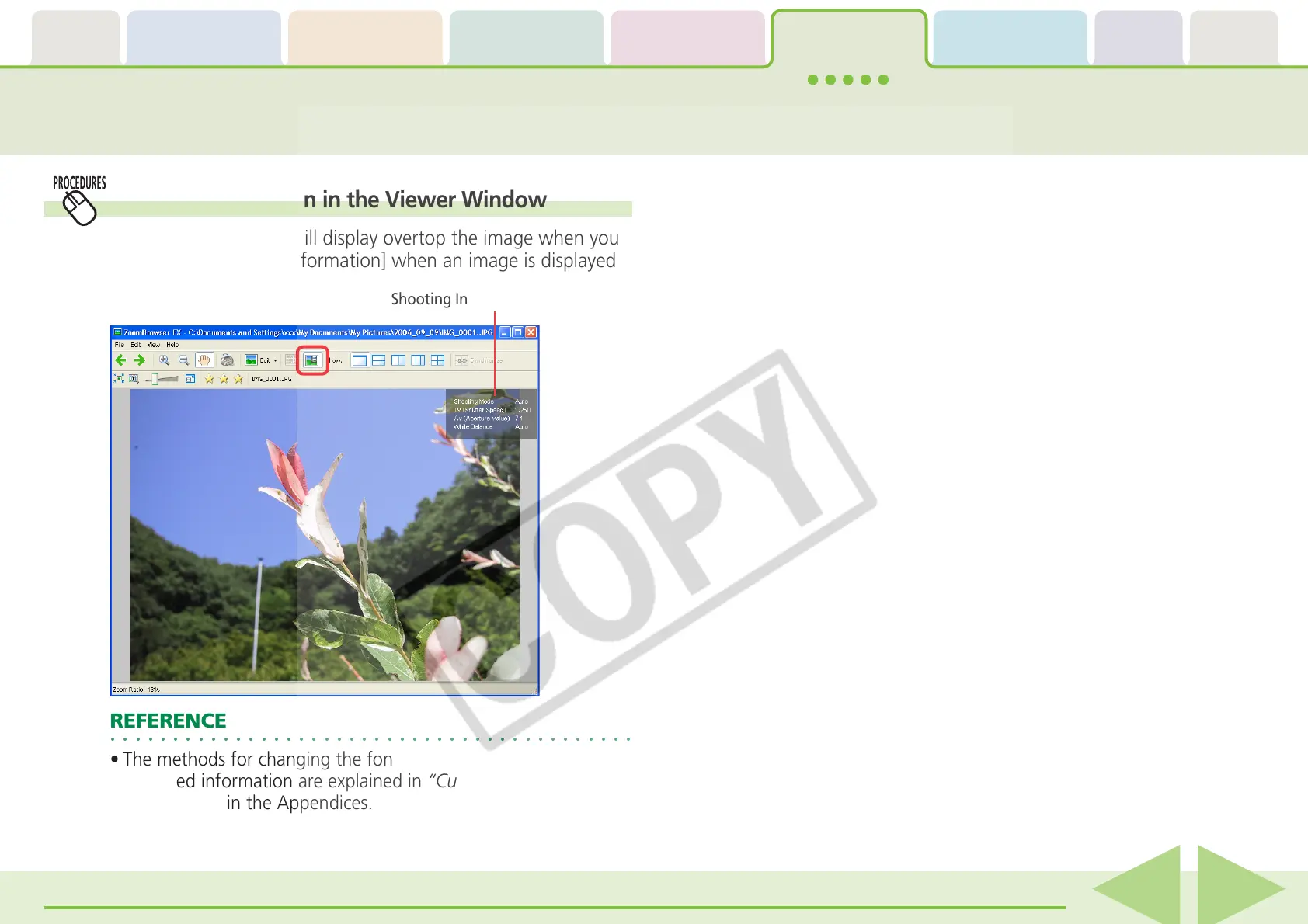 click [Show Shooting Information] when an image is displayed