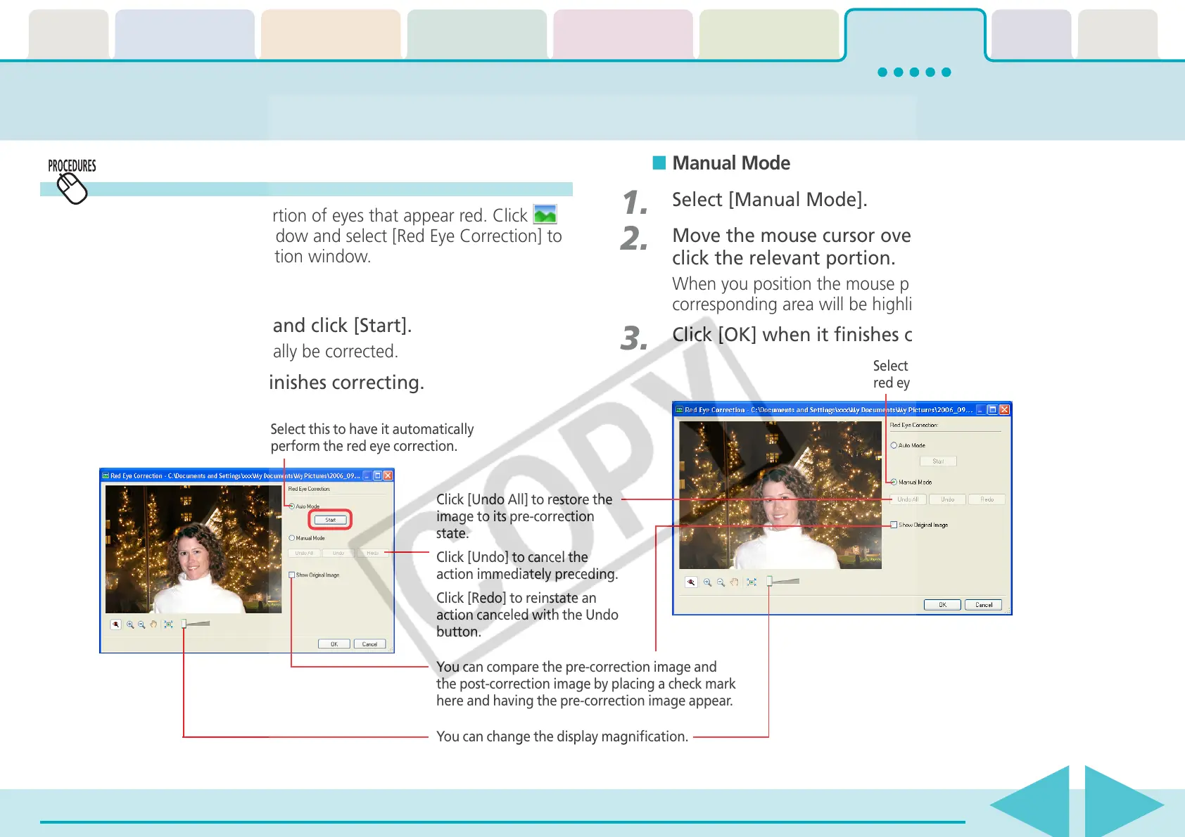 (Edit) in the Viewer Window and select [Red Eye Correction] to