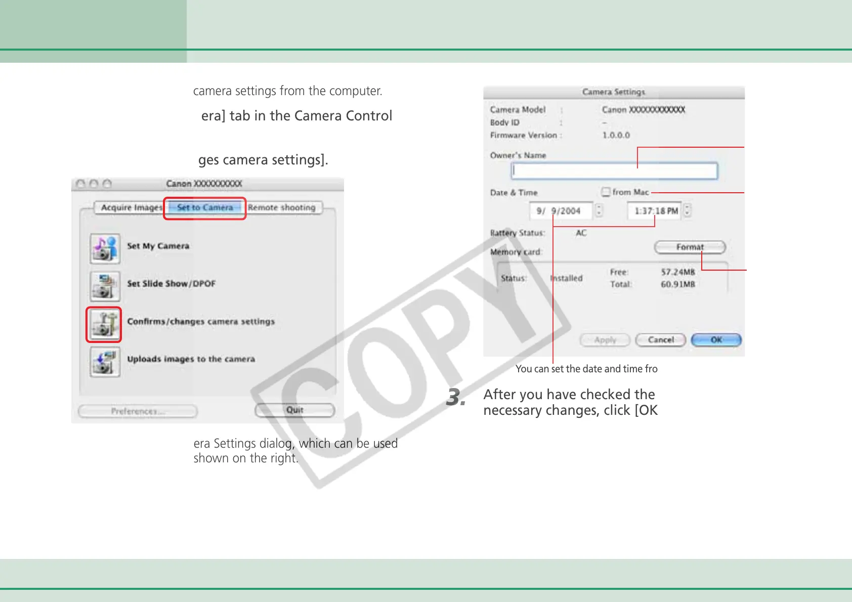 Click the [Set to Camera] tab in the Camera Control