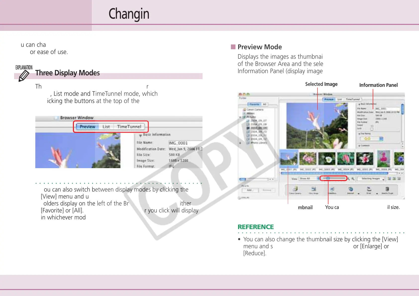 of the Browser Area and the selected thumbnail and the