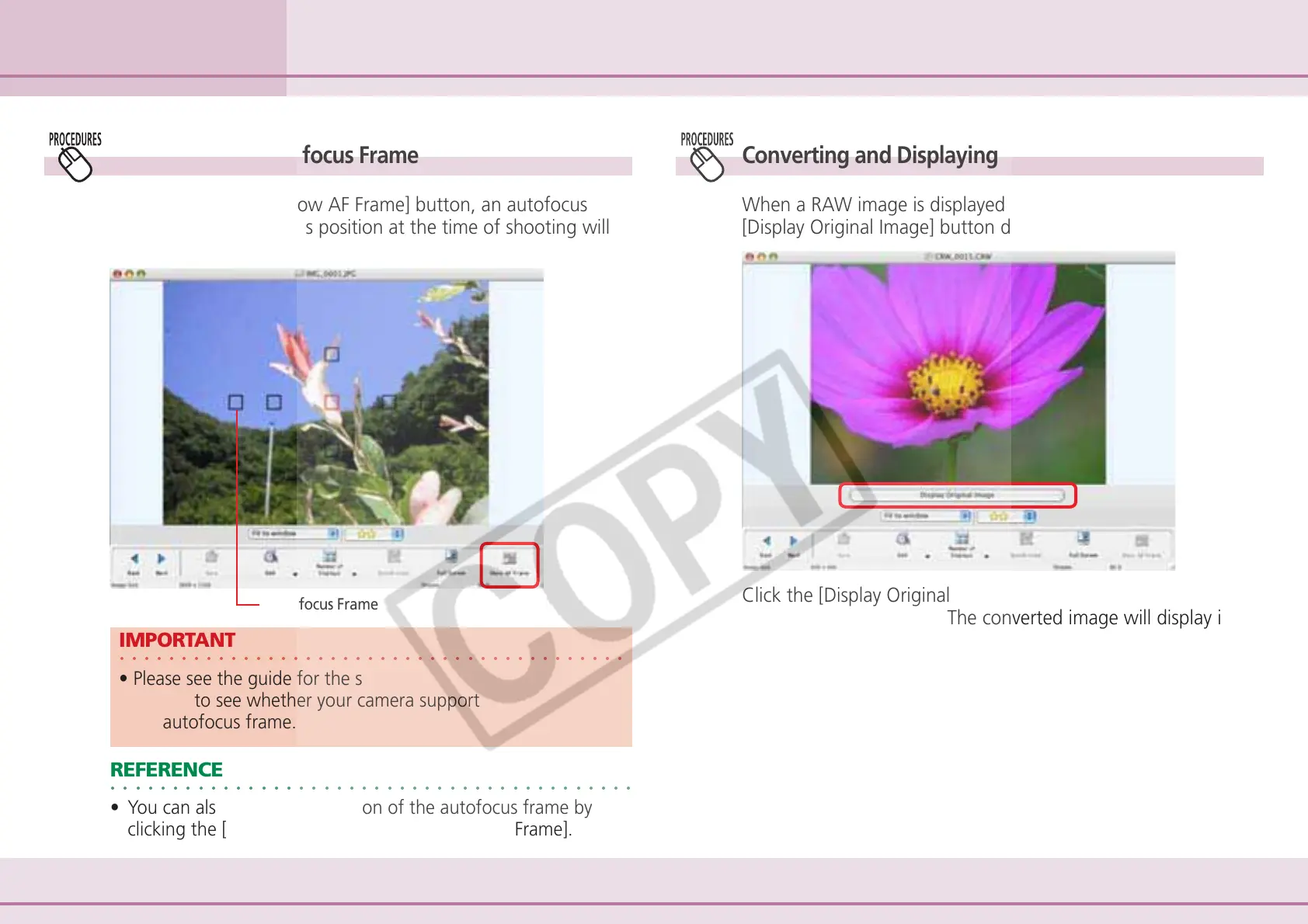 • You can also display the position of the autofocus frame by