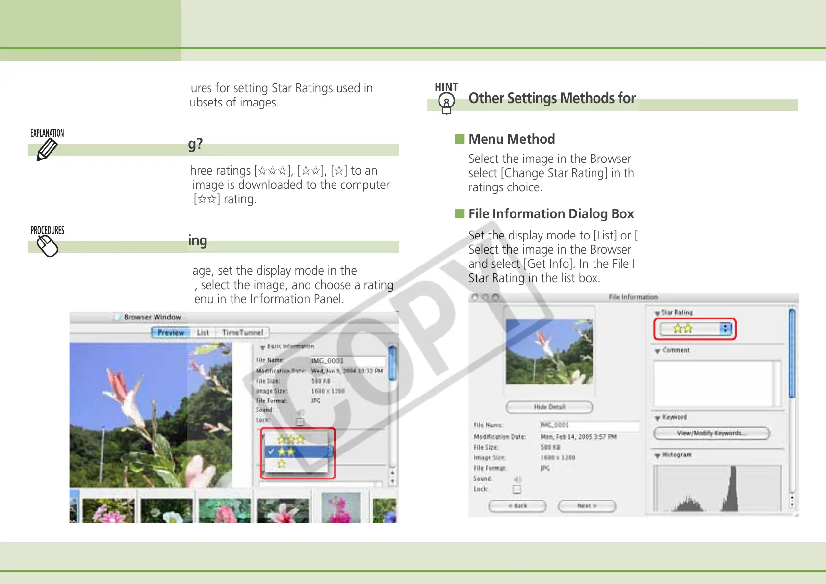 This section explains the procedures for setting Star Ratings used in