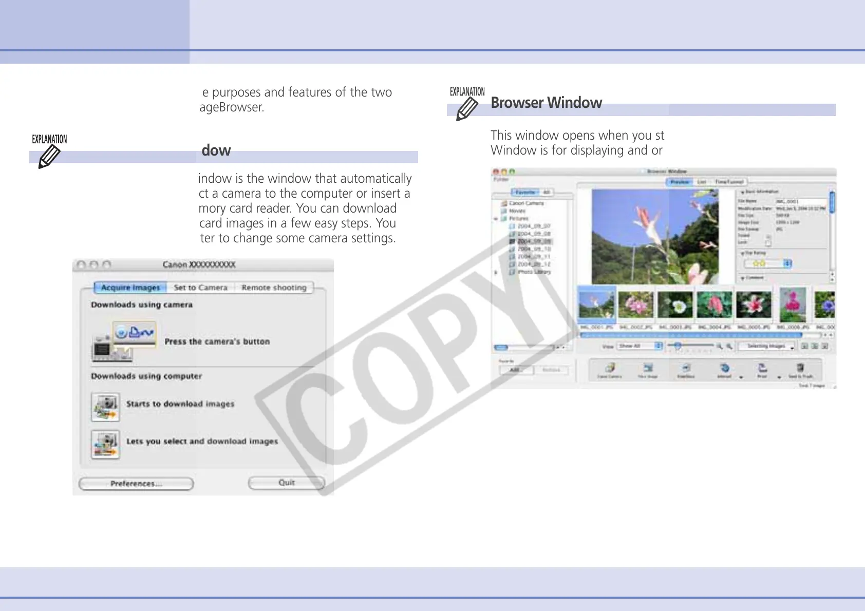 Guide to the ImageBrowser Windows (1/2)