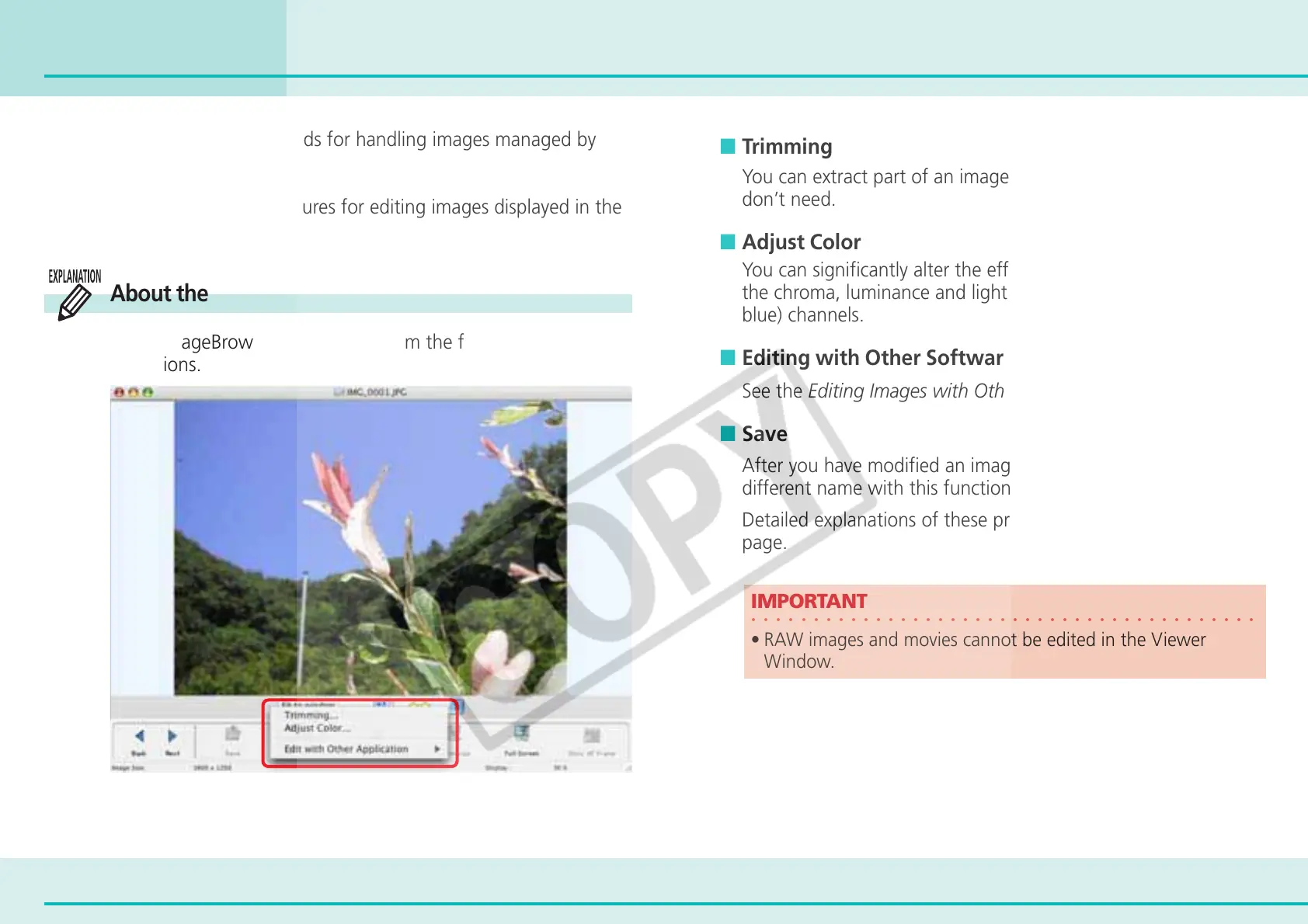 • RAW images and movies cannot be edited in the Viewer