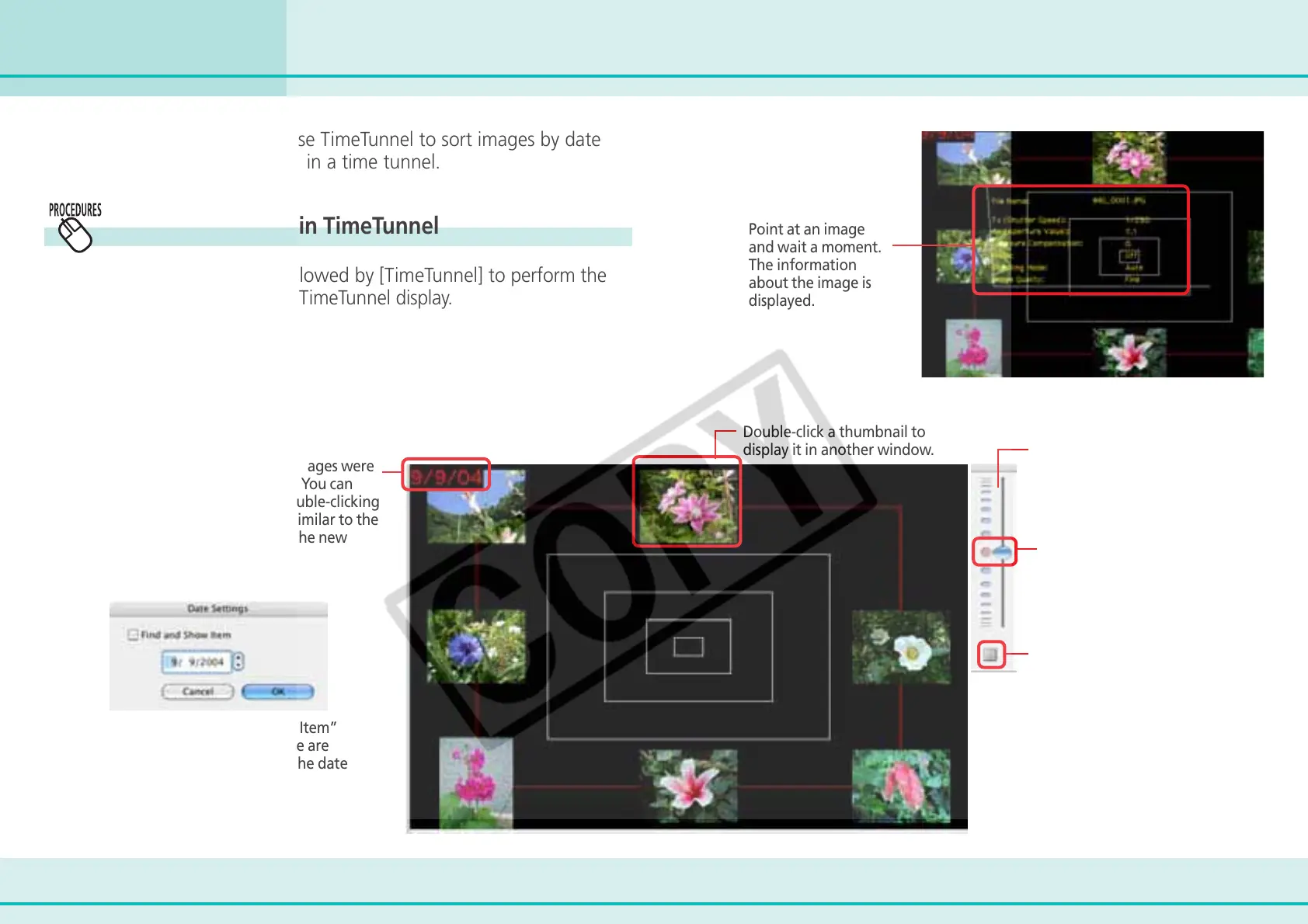 This section describes how to use TimeTunnel to sort images by date