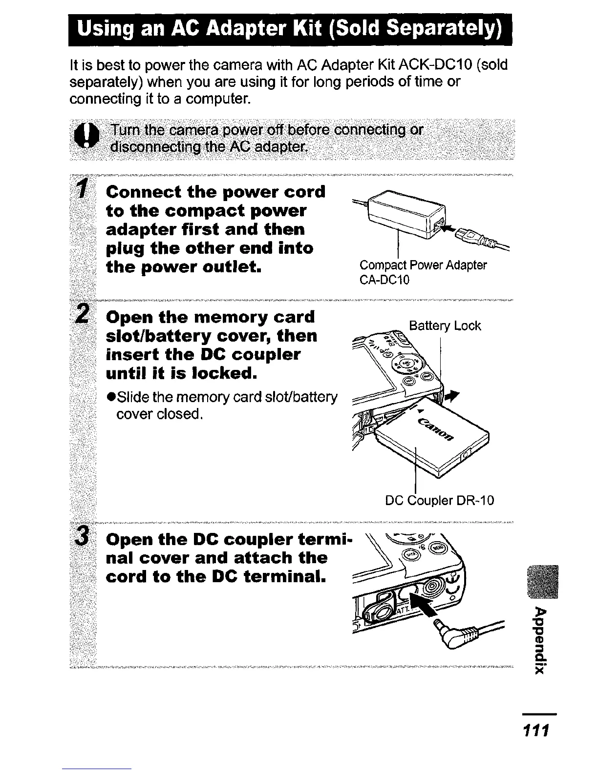 Canon PowerShot SD600 - Using an AC Adapter Kit (Sold Separately)