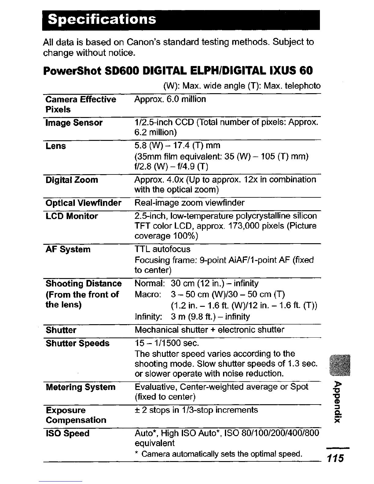 PowerShot SD600 DIGITAL ELPH/DIGITAL IXUS