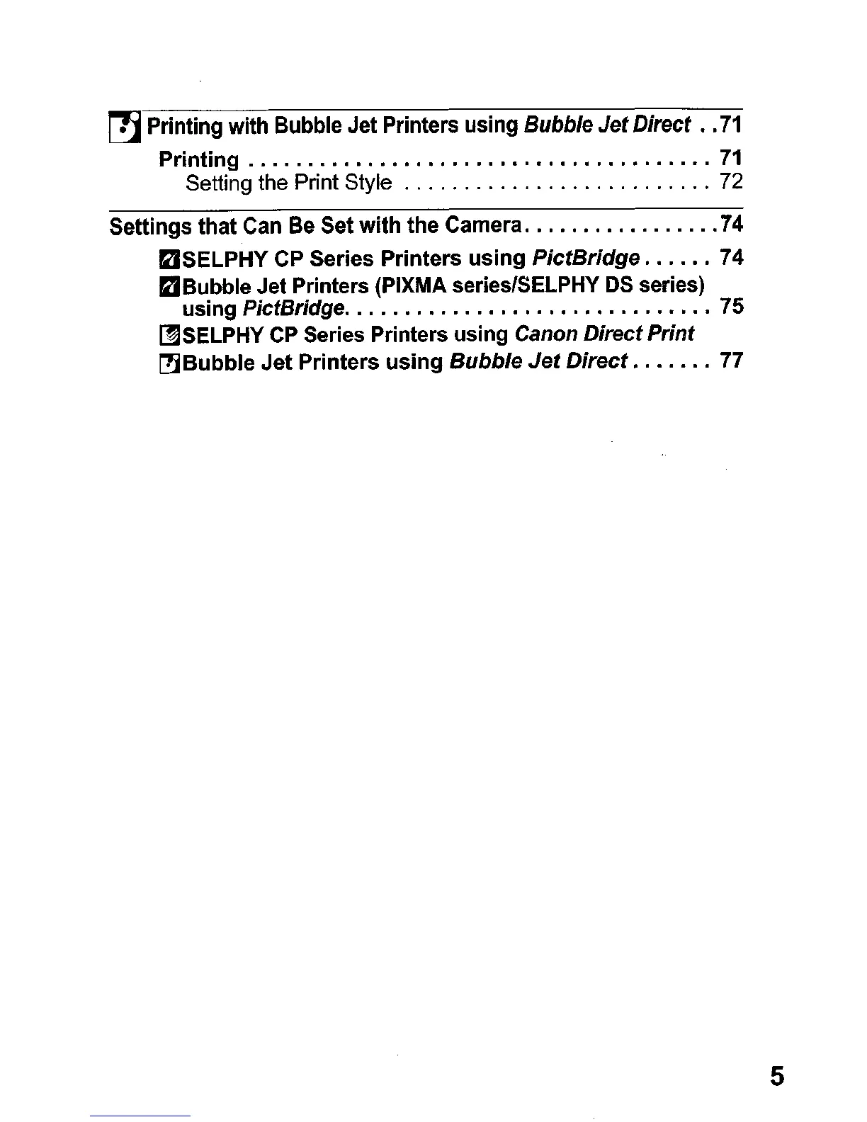 using PictBridge 75