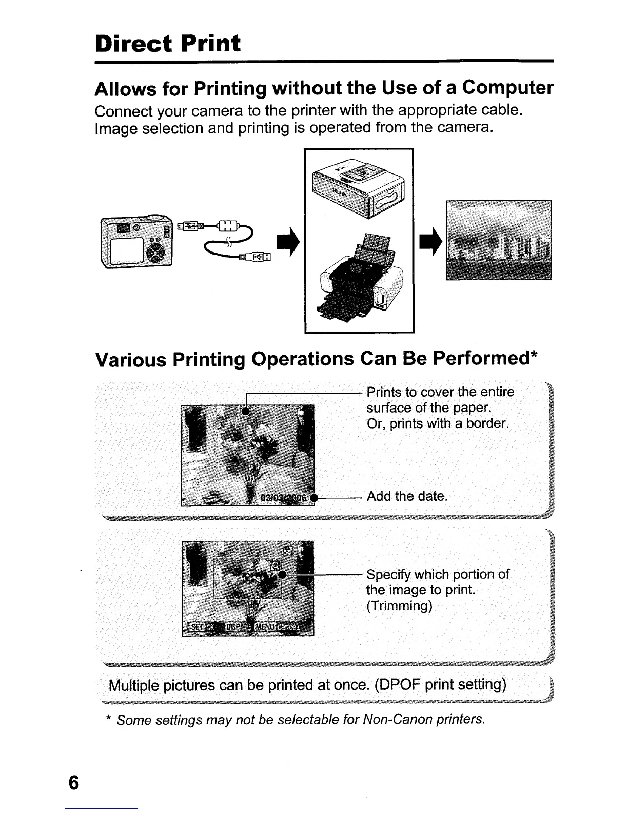 * Some settings may not be selectable for Non-Canon printers.