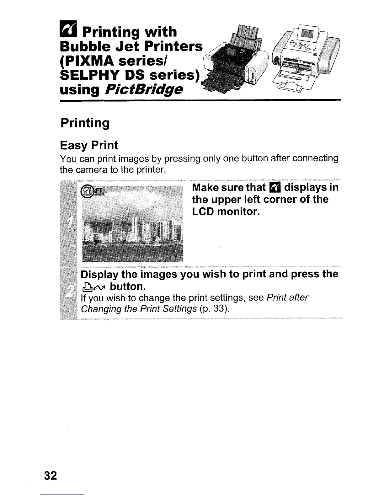 Canon PowerShot SD600 - Printing; Easy Print; Printing with Bubble Jet Printers