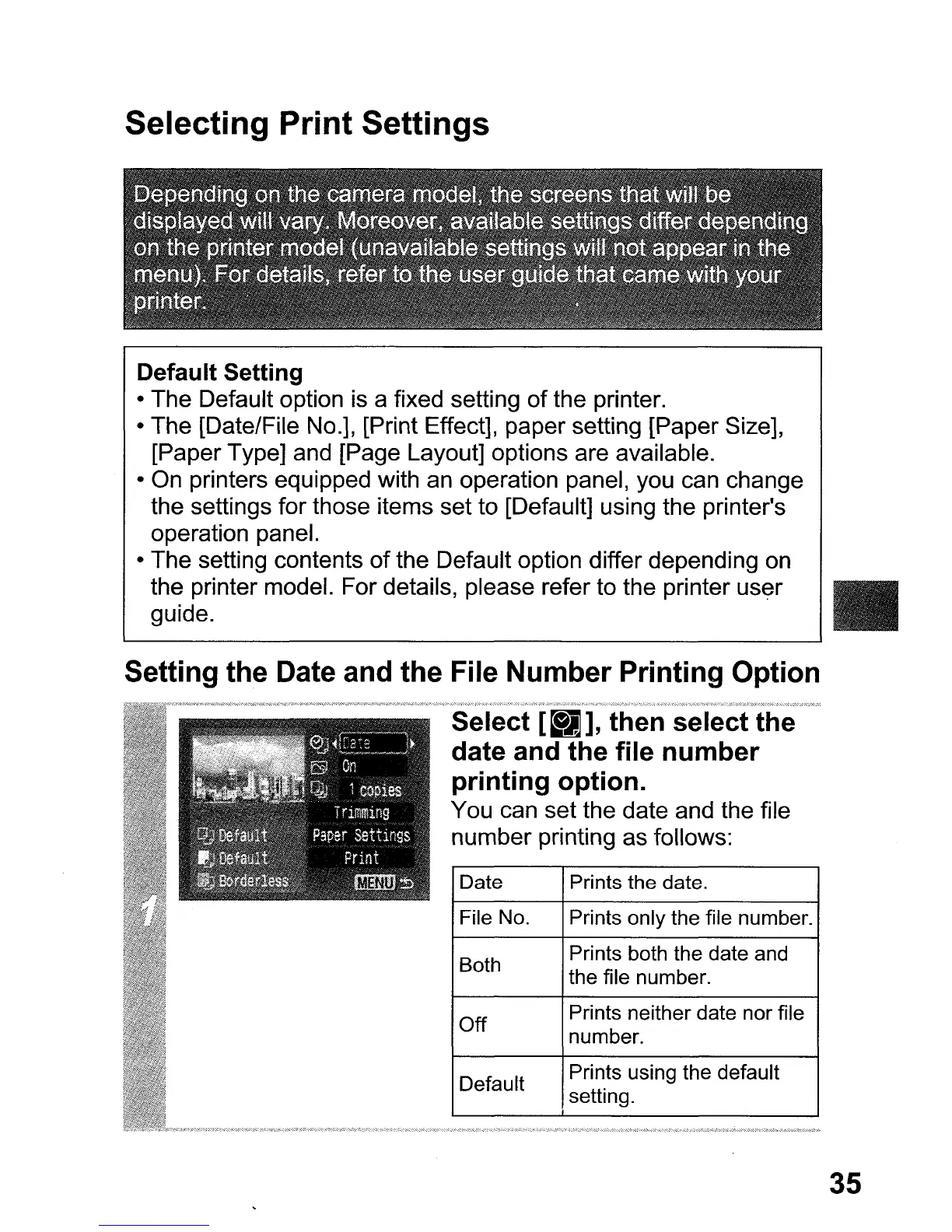 Setting the Date and the File Number Printing Option