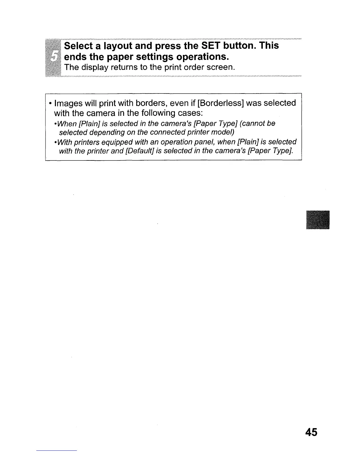 • Images will print with borders, even if [Borderless] was selected