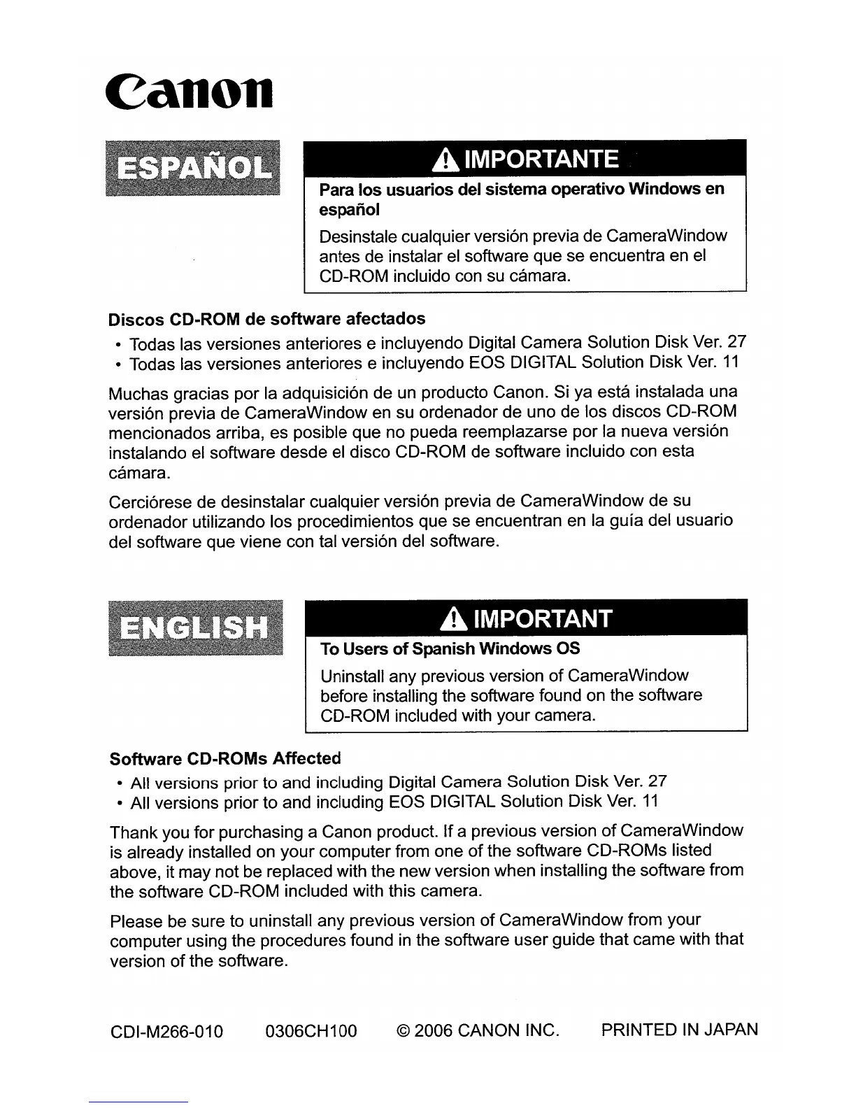 Muchas gracias por la adquisici6n de un producto Canon. Si ya esta instalada una