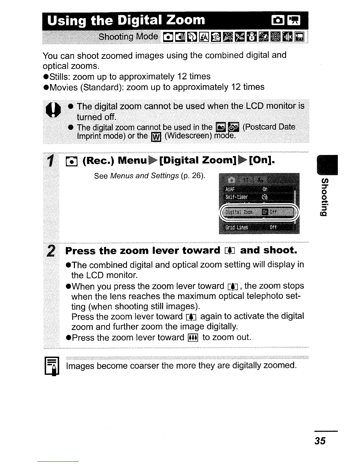 You can shoot zoomed images using the combined digital and