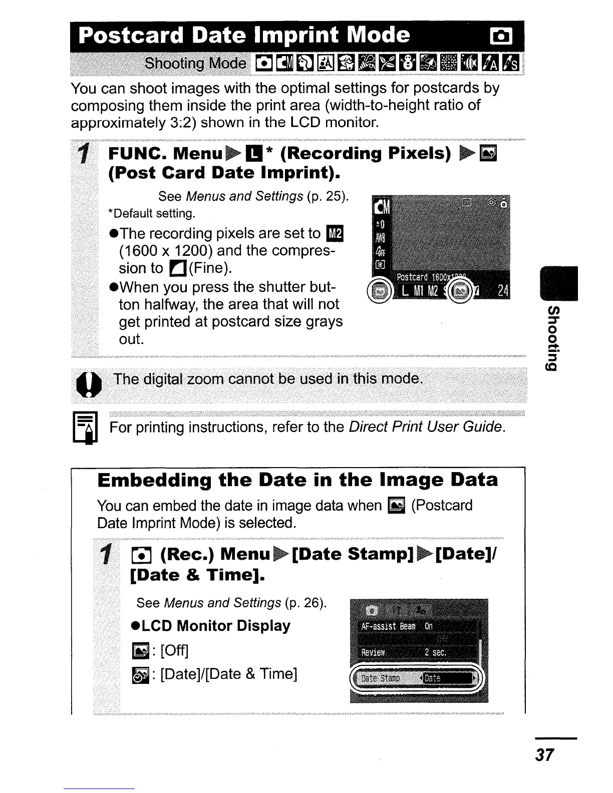 You can shoot images with the optimal settings for postcards by