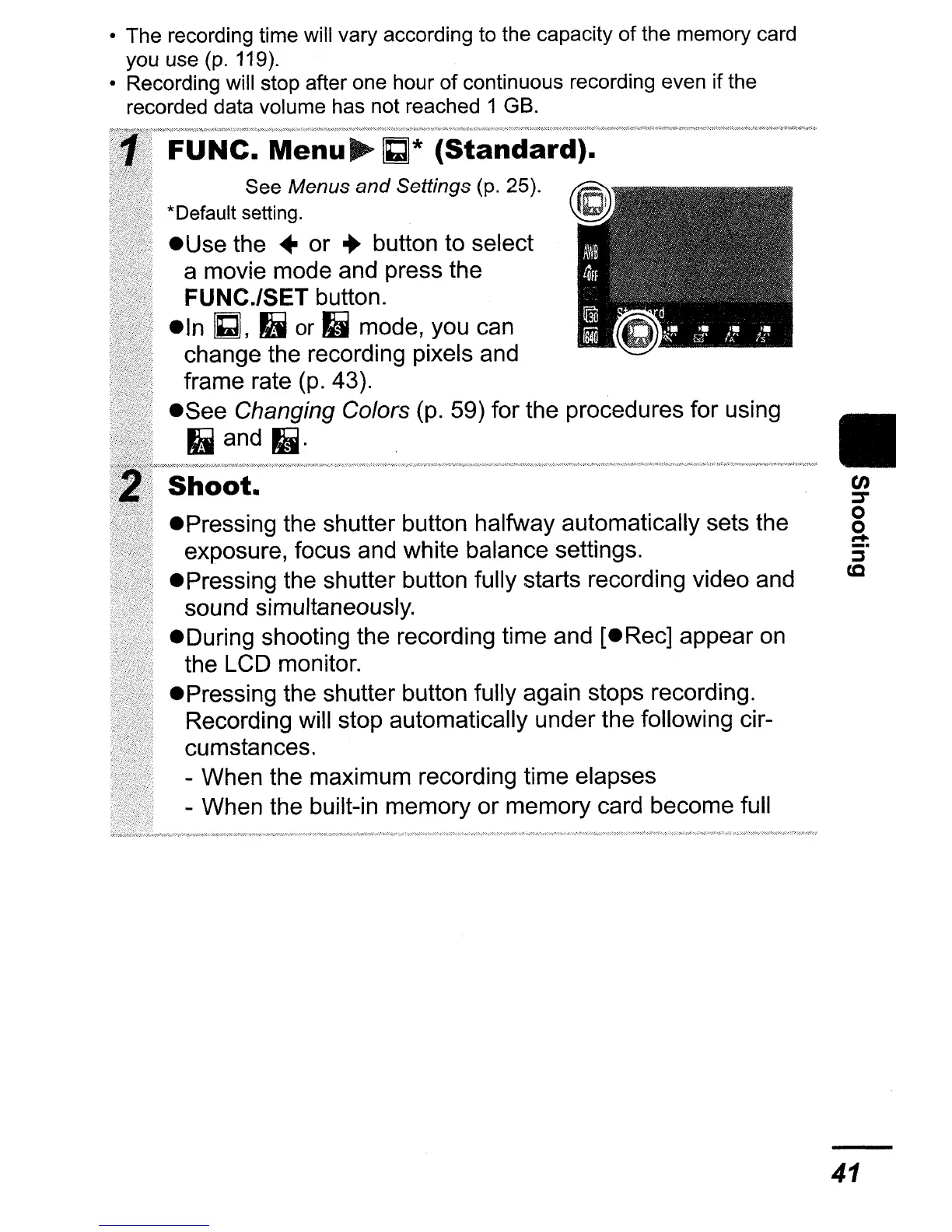 • The recording time will vary according to the capacity of the memory card
