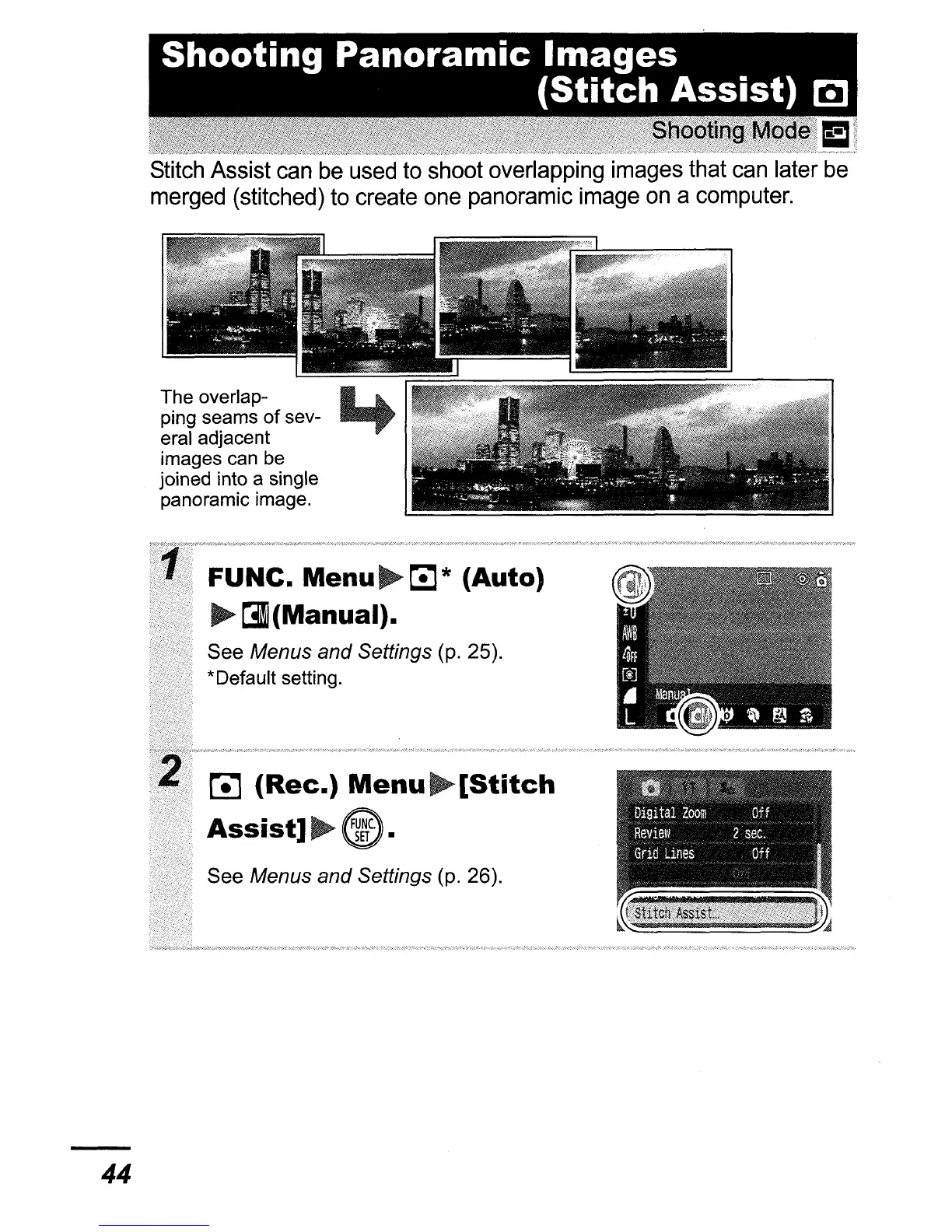 Canon PowerShot SD600 - Shooting Panoramic Images (Stitch Assist)