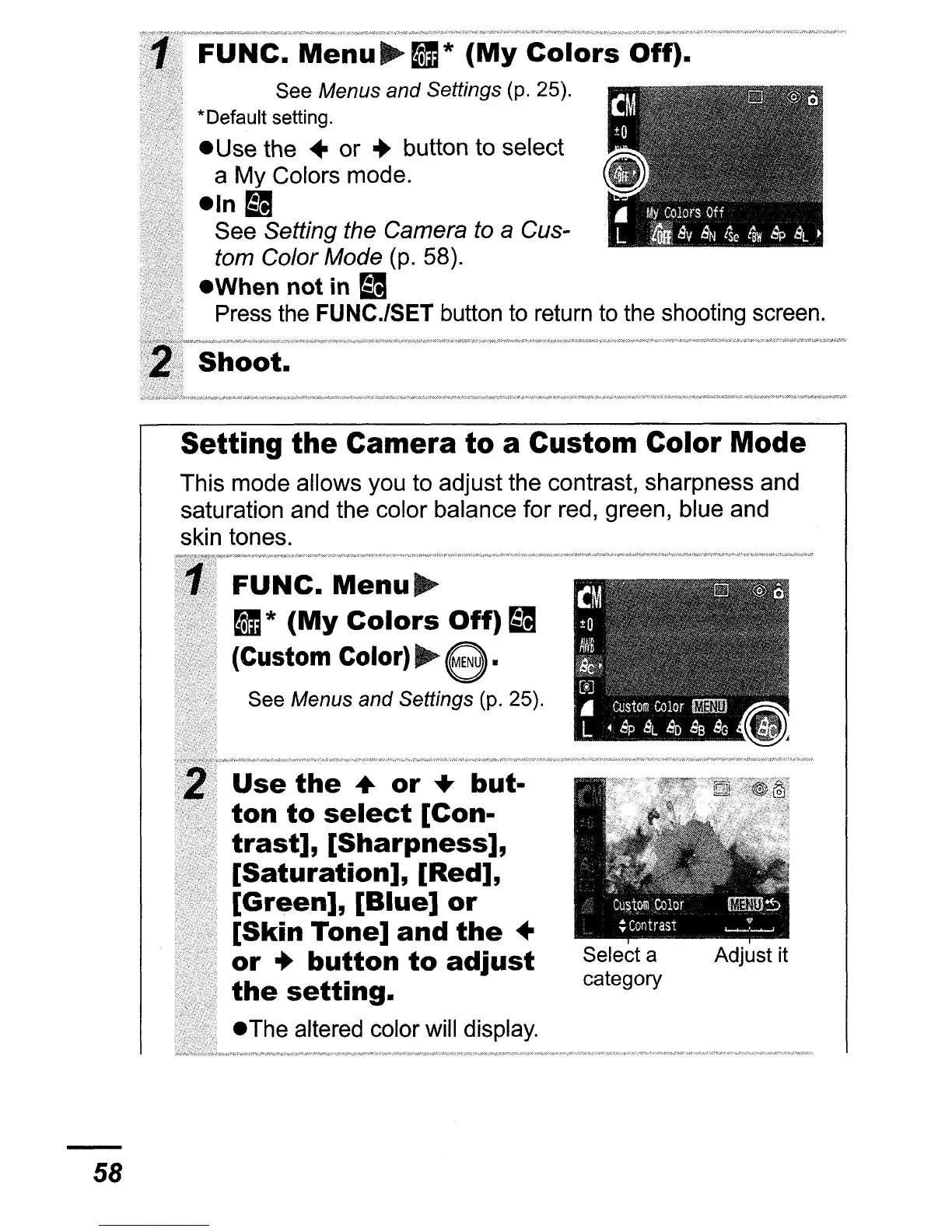 Setting the Camera to a Custom Color Mode