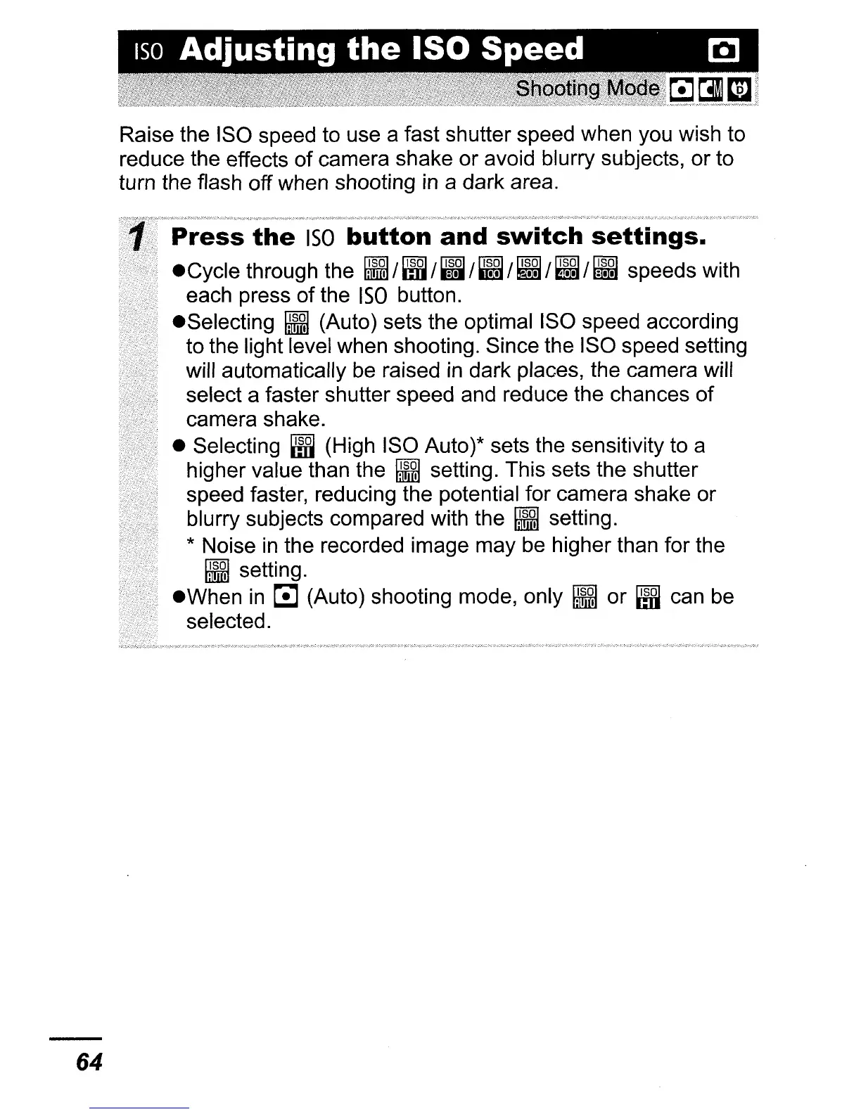 (Auto) sets the optimal ISO speed according