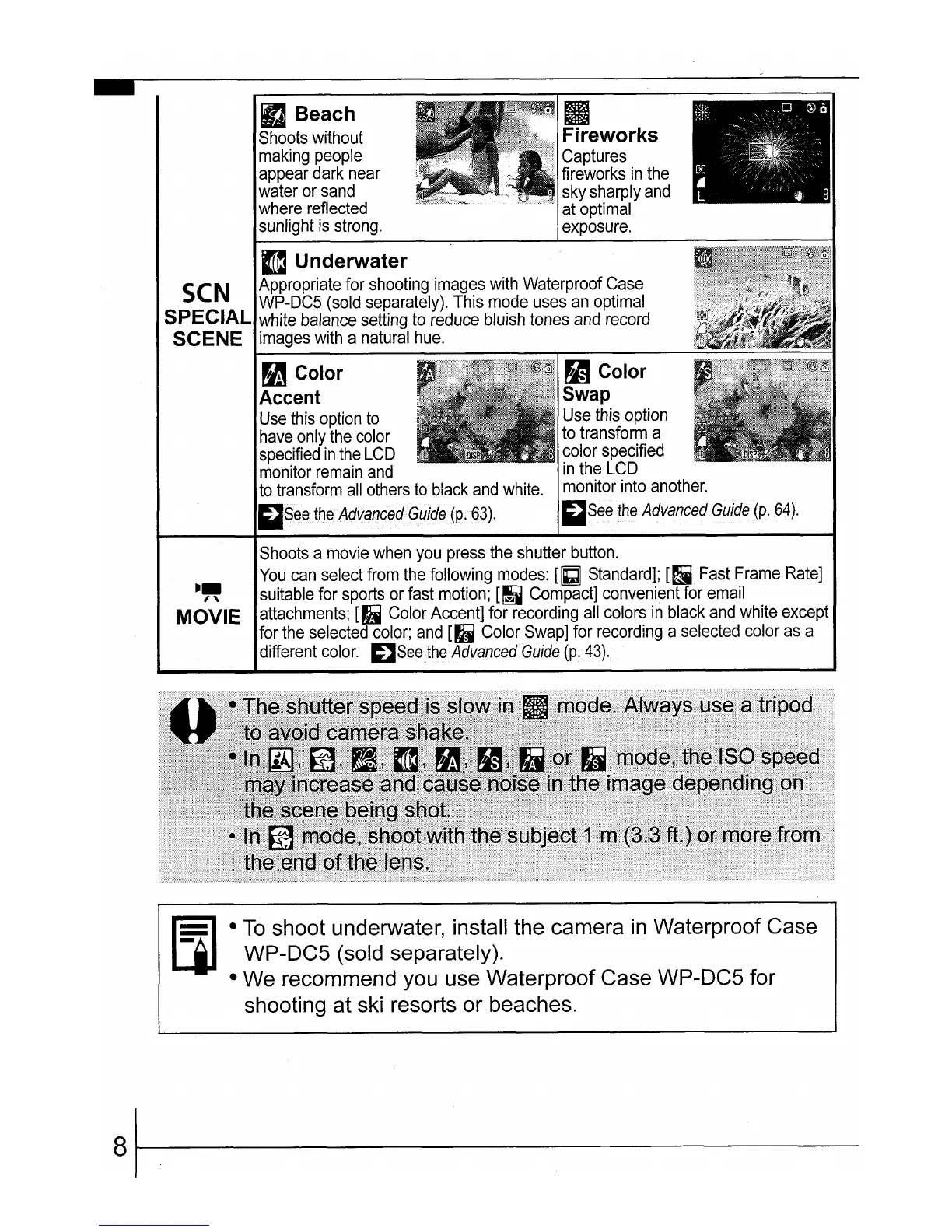 shooting at ski resorts or beaches.