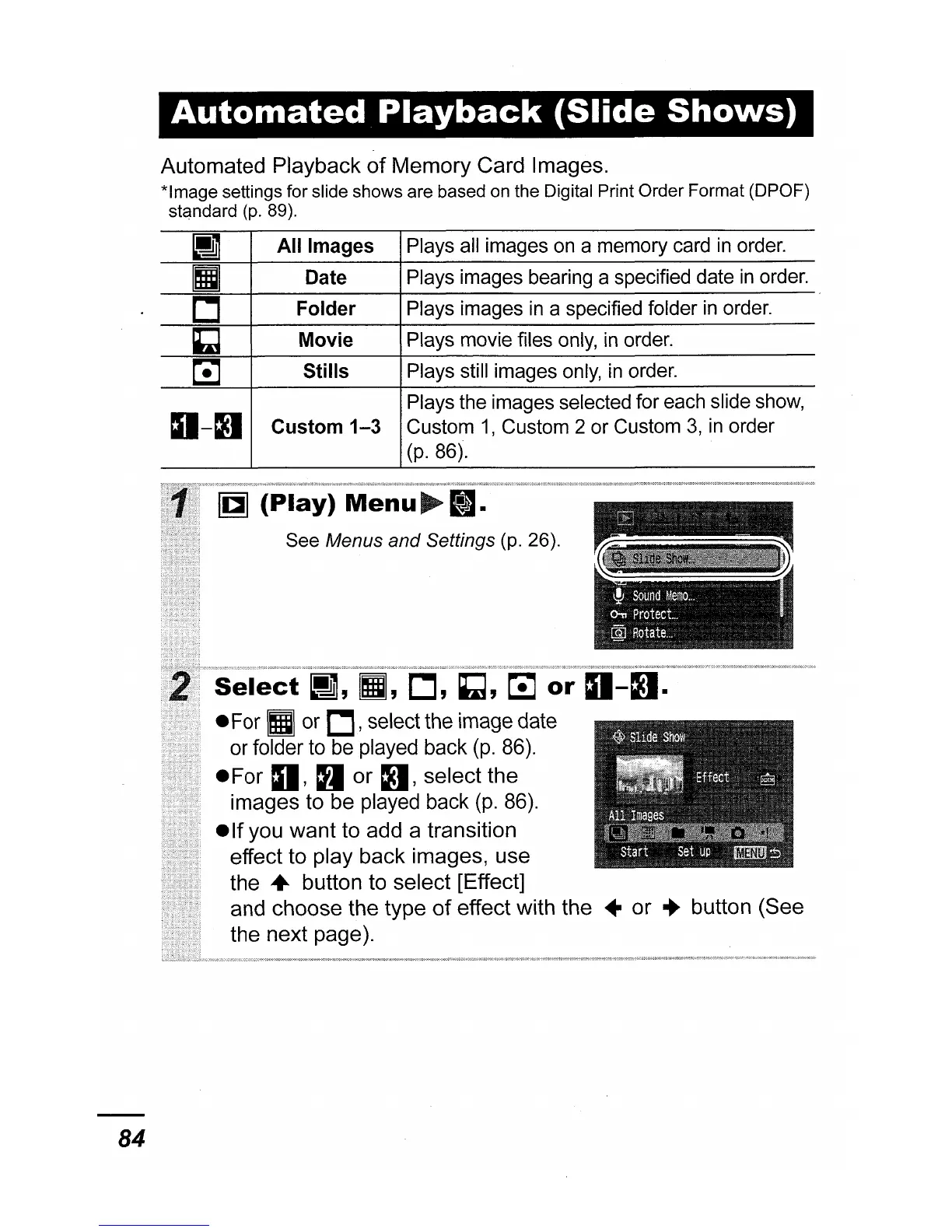 *Image settings for slide shows are based on the Digital Print Order Format (DPOF)