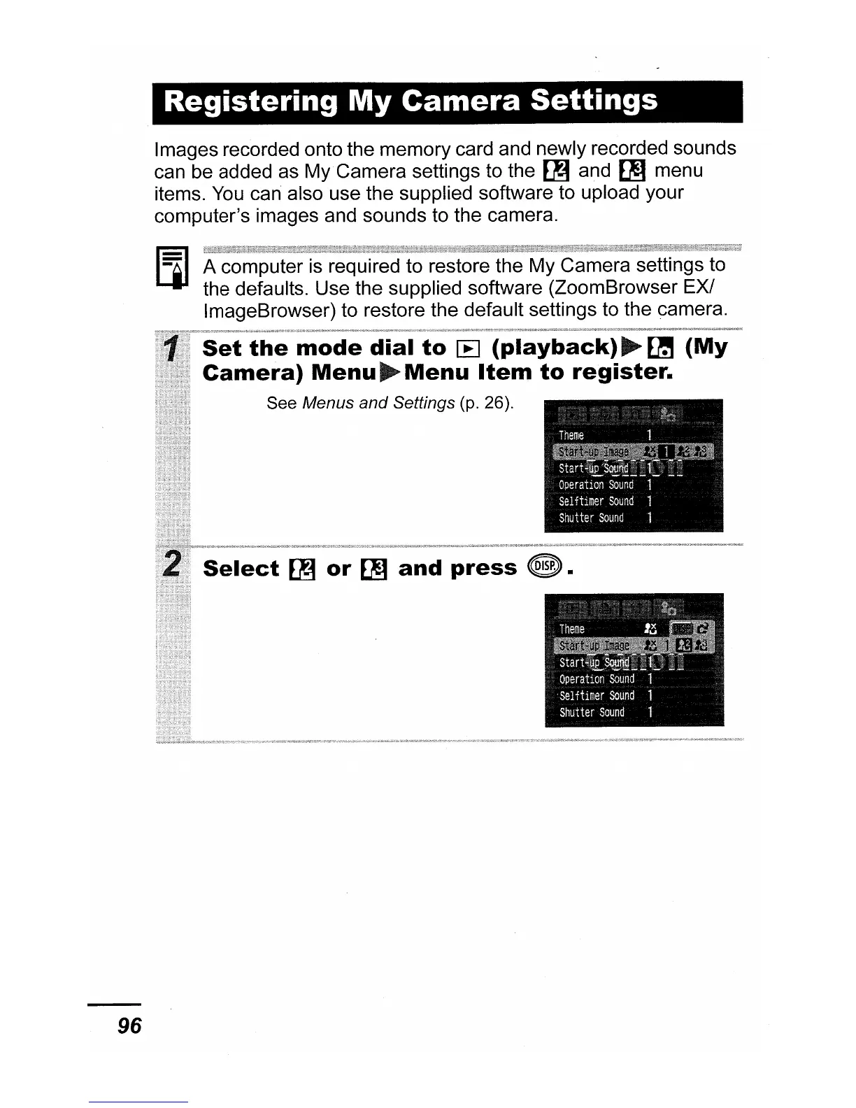ImageBrowser) to restore the default settings to the camera.