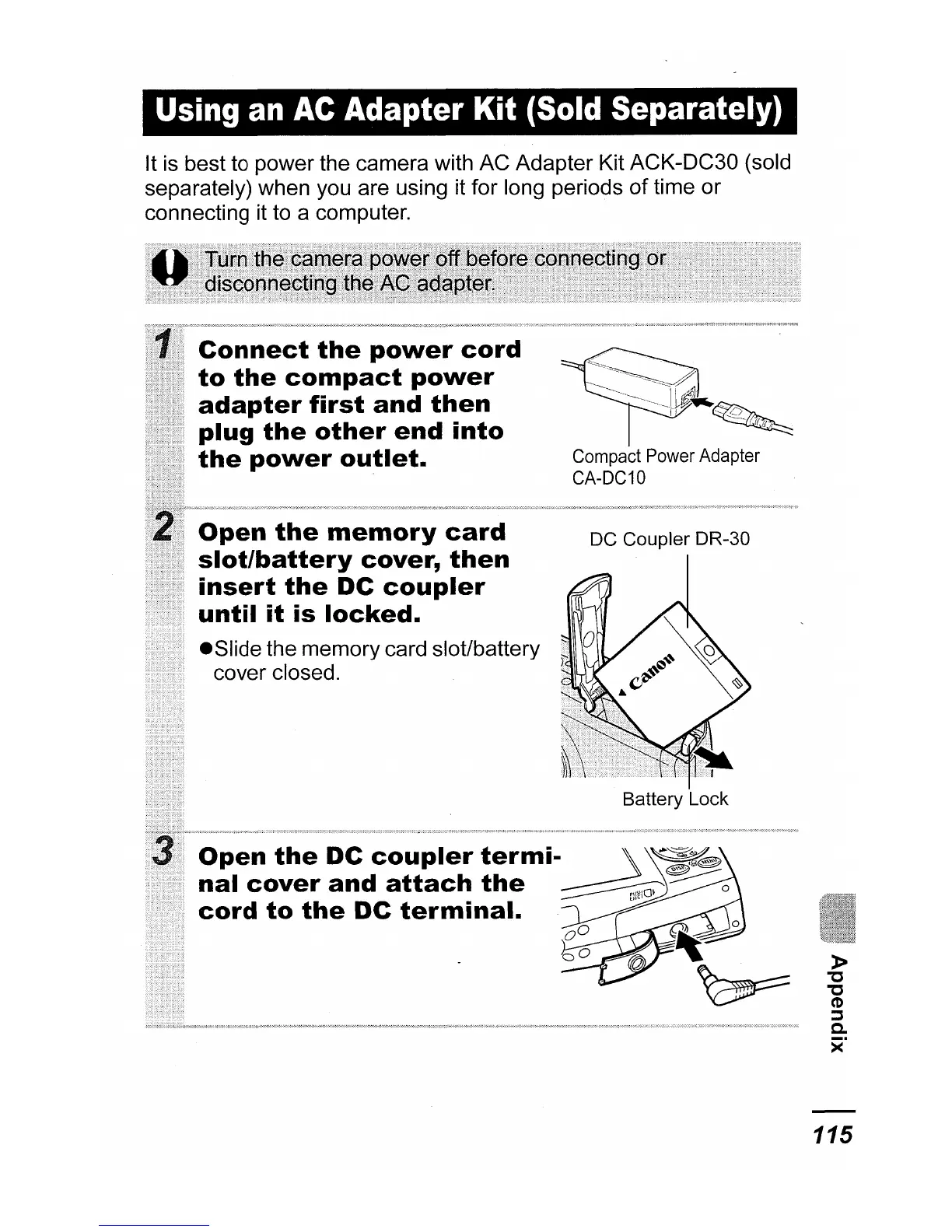 best to power the camera with AC Adapter Kit ACK-DC30 (sold