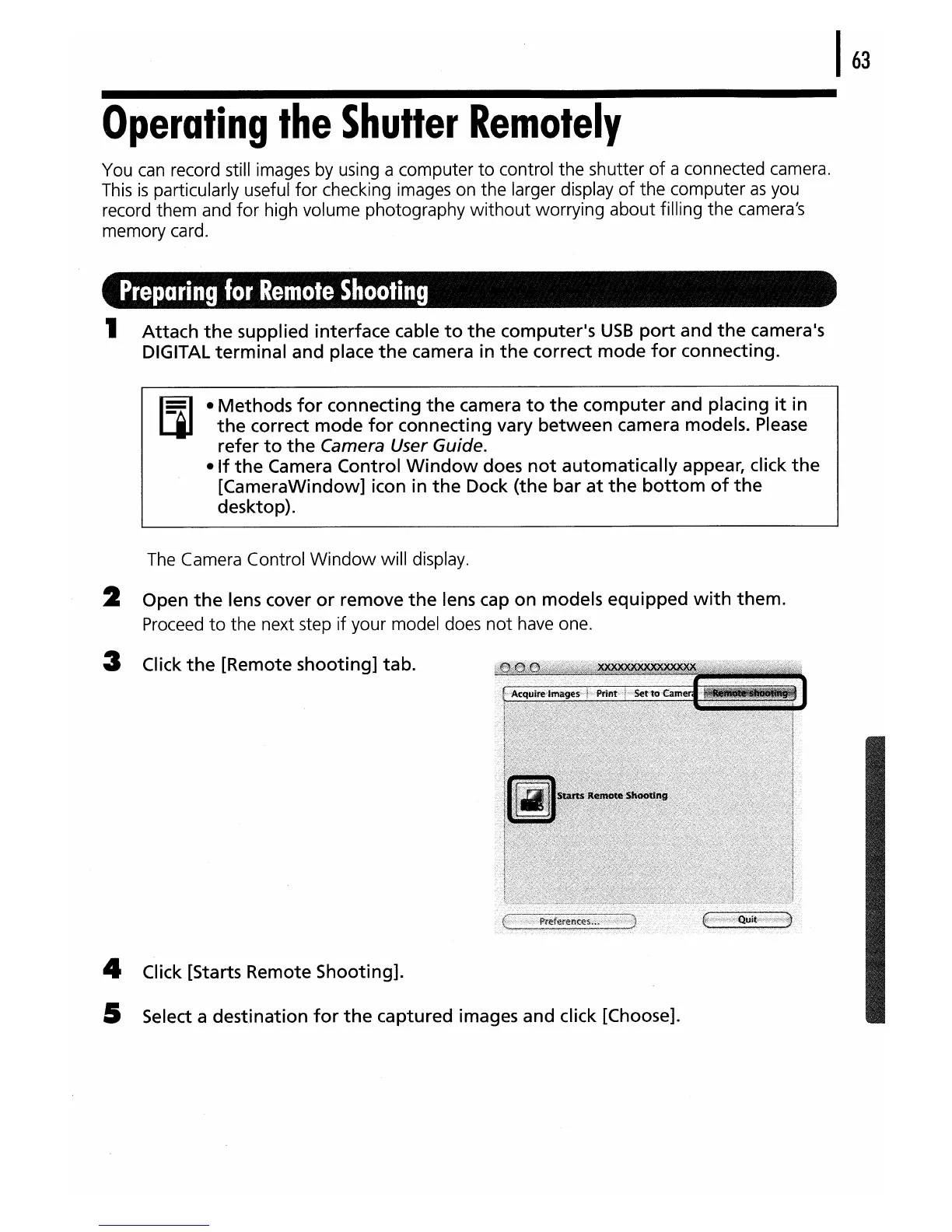 4 Click [Starts Remote Shooting].