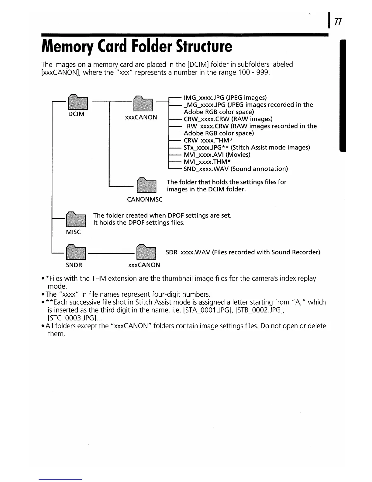 • All folders except the IIxxxCANON" folders contain image settings files. Do