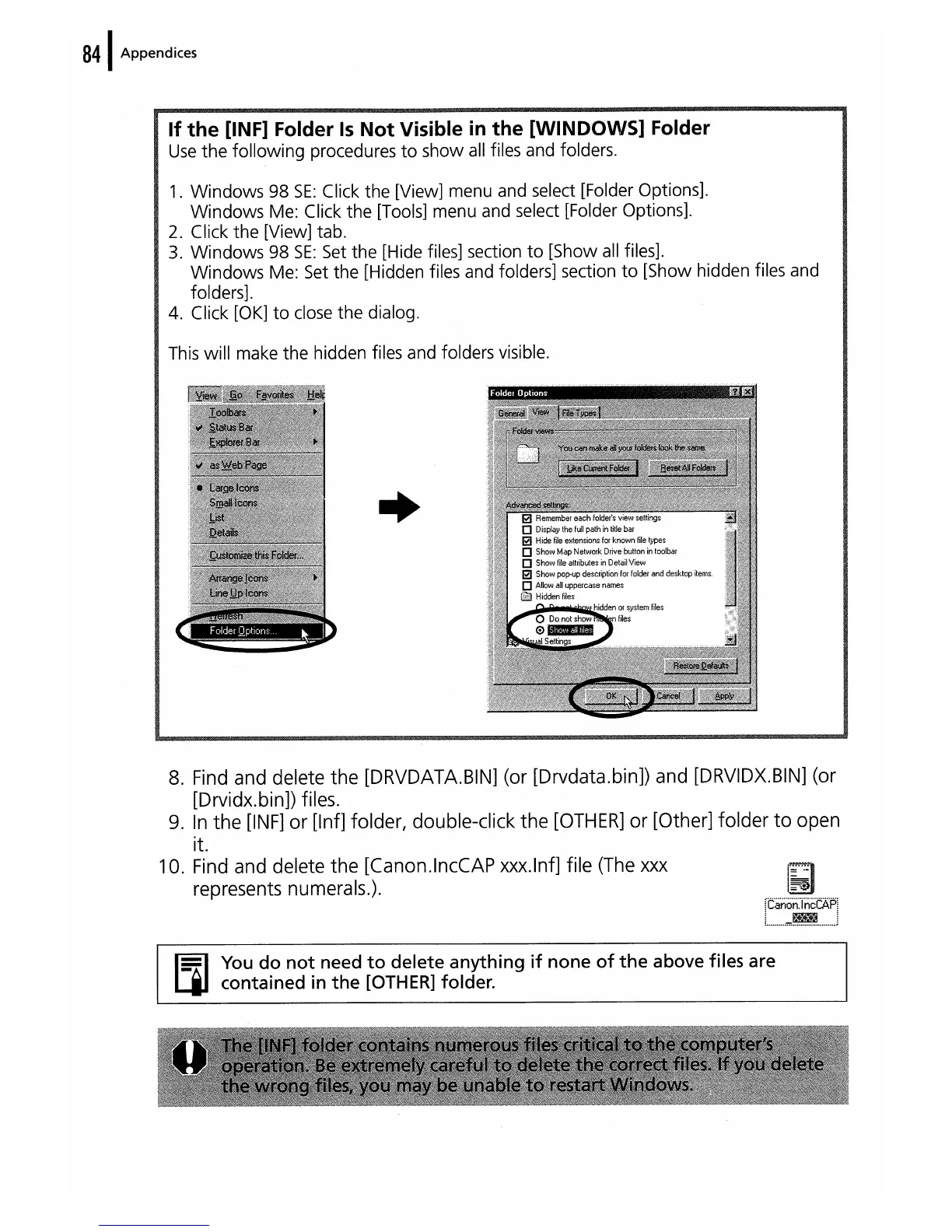Windows Me: Click the [Tools] menu and select [Folder Options].
