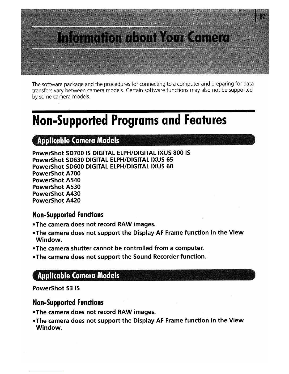 transfers vary between camera models. Certain software functions may also