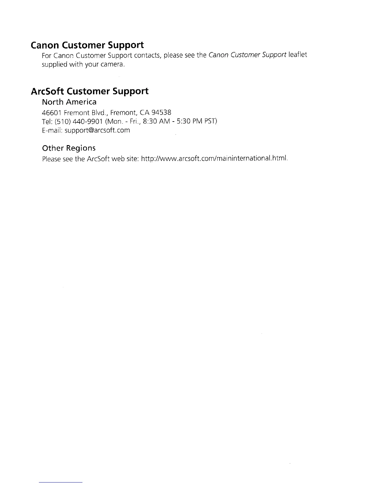Canon Customer Support contacts, please