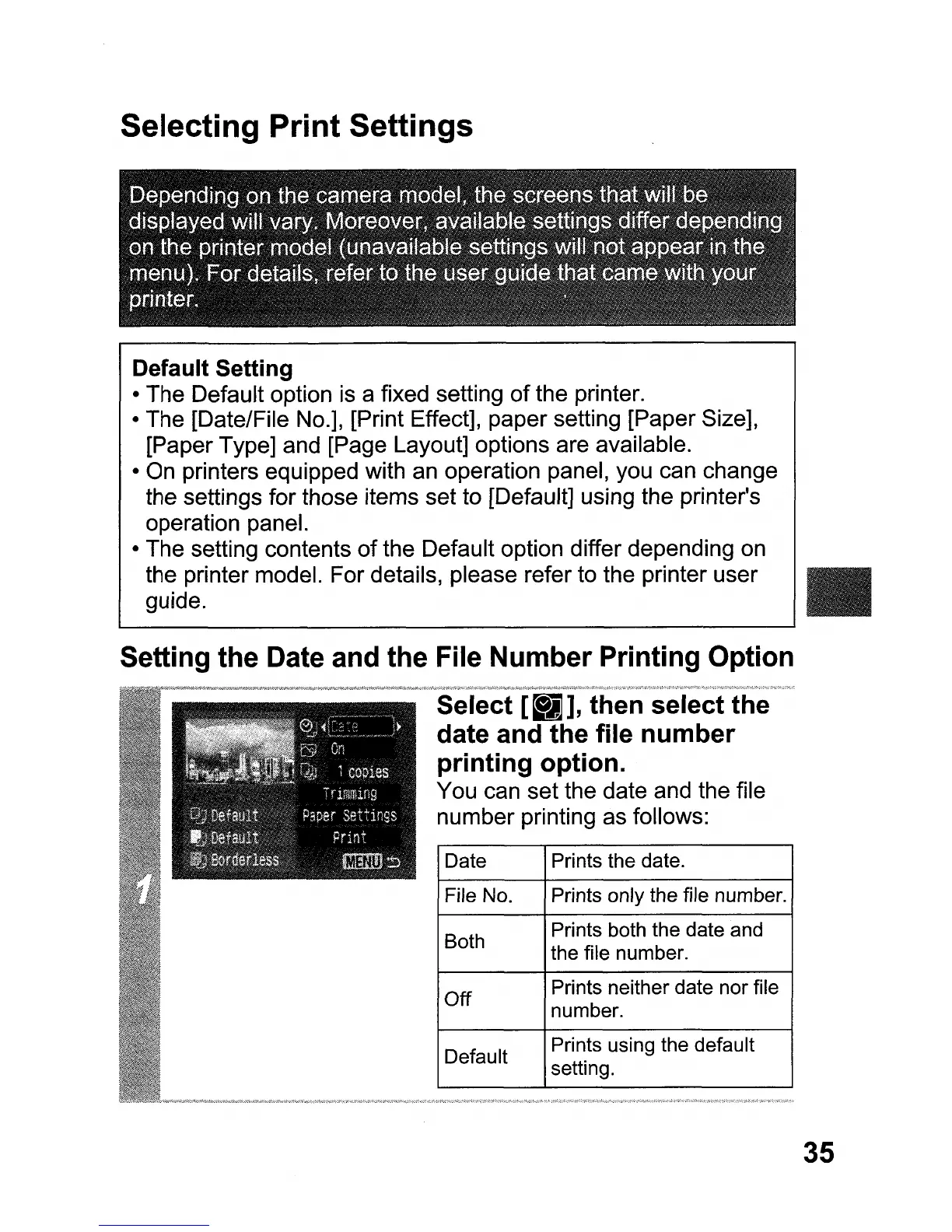 • The [Date/File No.], [Print Effect], paper setting [Paper Size],