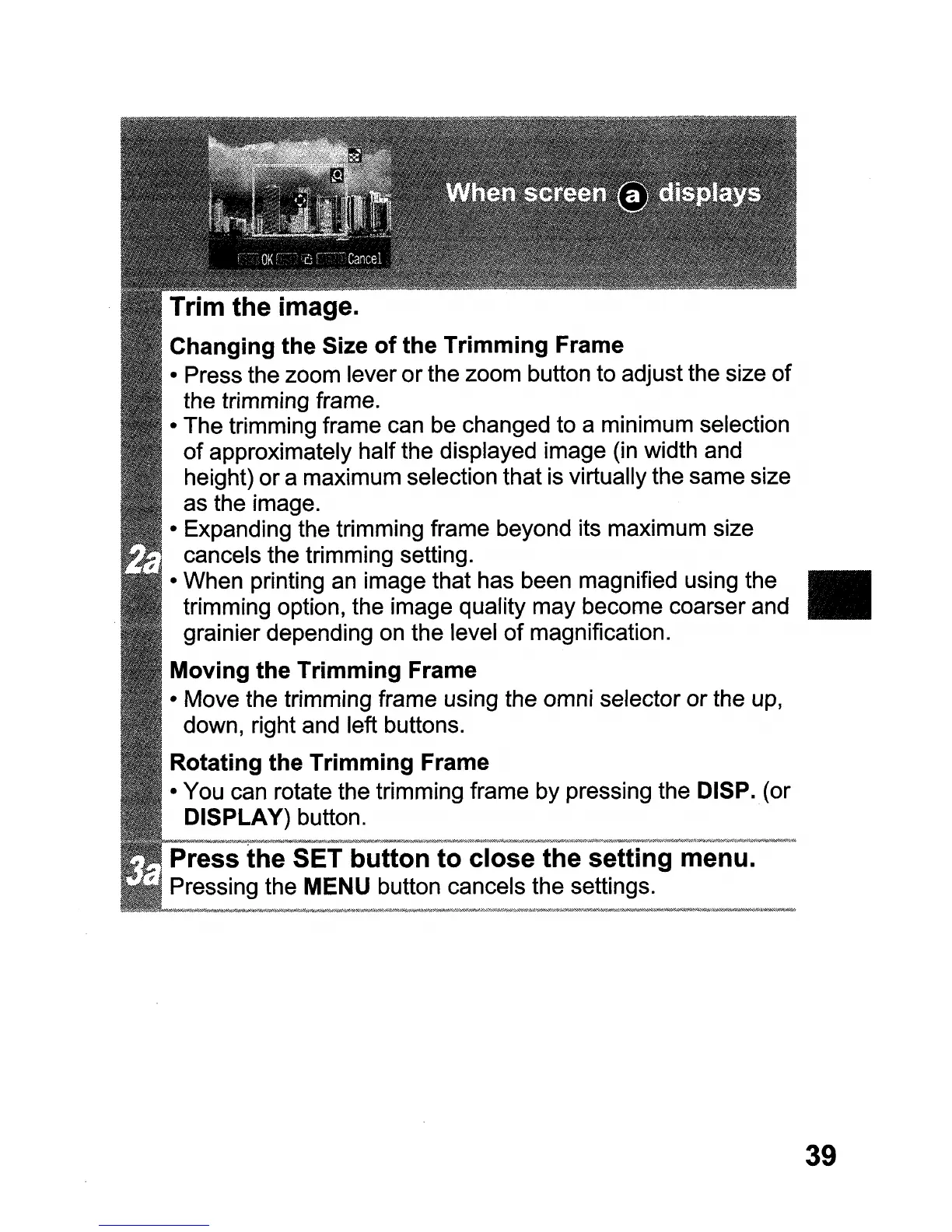 • You can rotate the trimming frame by pressing the DISP. (or