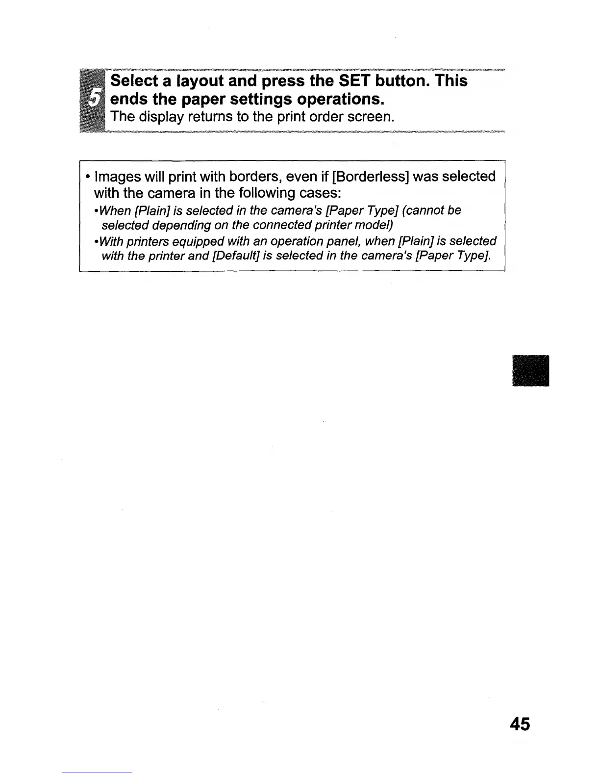 •When [Plain] is selected in the camera's [Paper Type] (cannot be