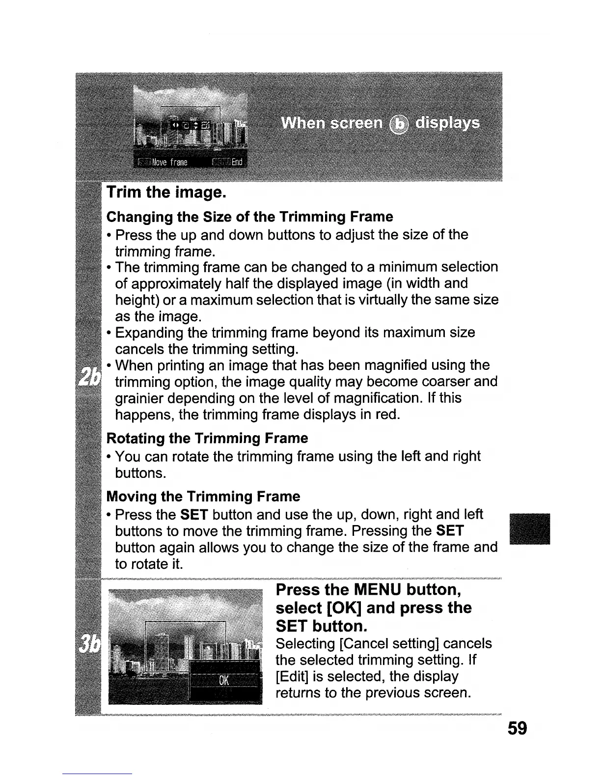 buttons to move the trimming frame. Pressing the