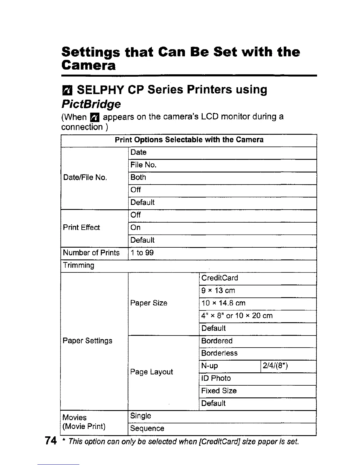 option can only be selected when [CreditCard] size paperis set.