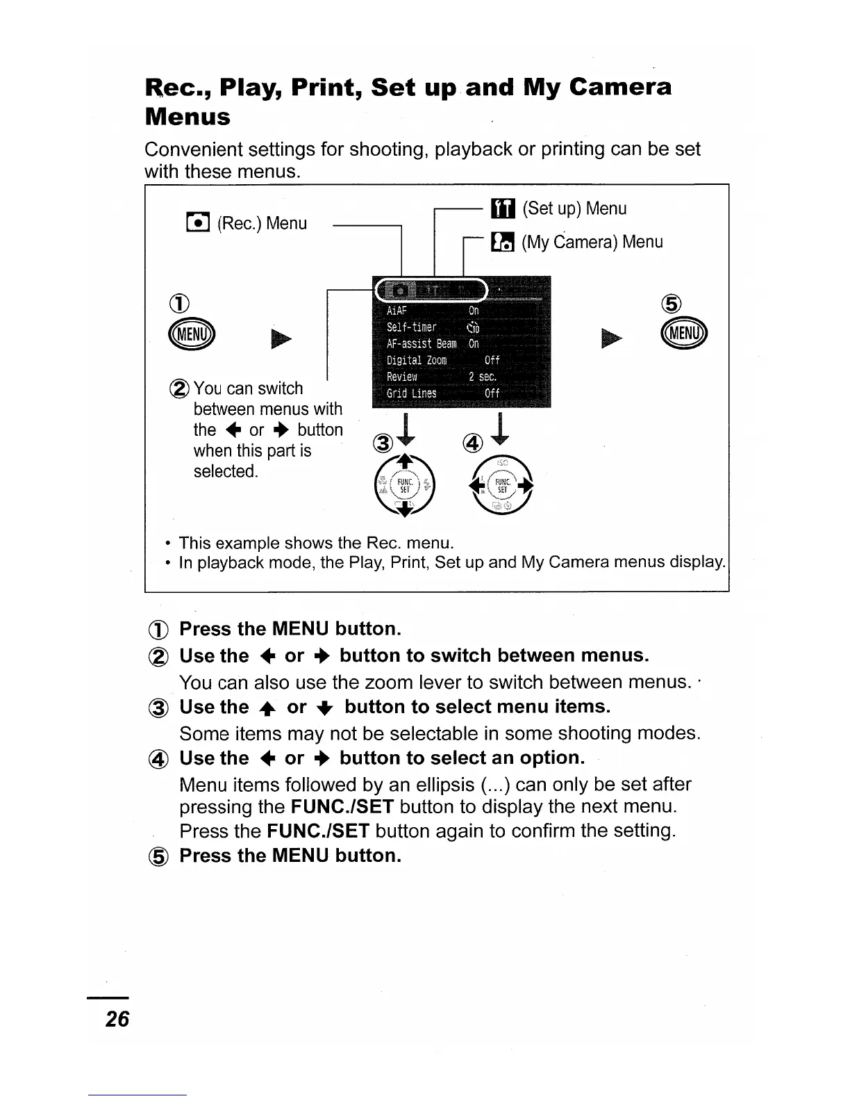 playback mode, the Play, Print, Set up and My Camera menus display.