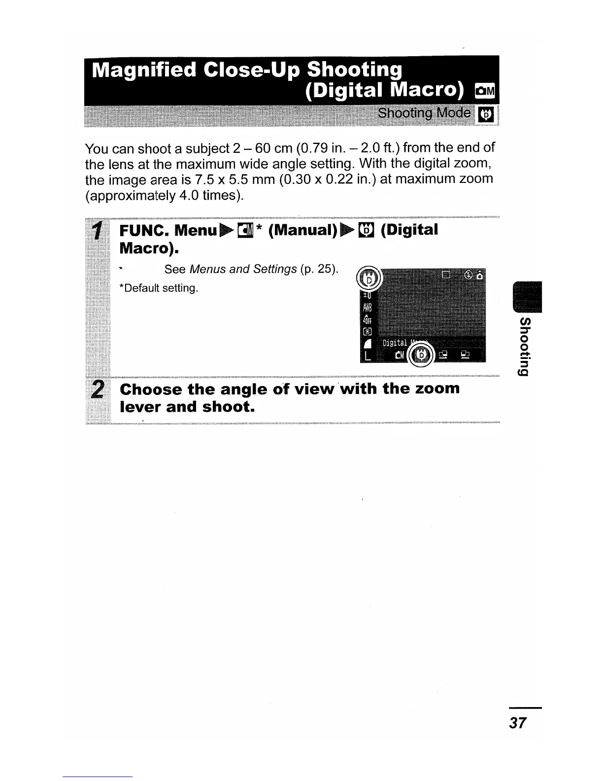 You can shoot a subject 2 - 60 cm (0.79 in. - 2.0 ft.) from the end