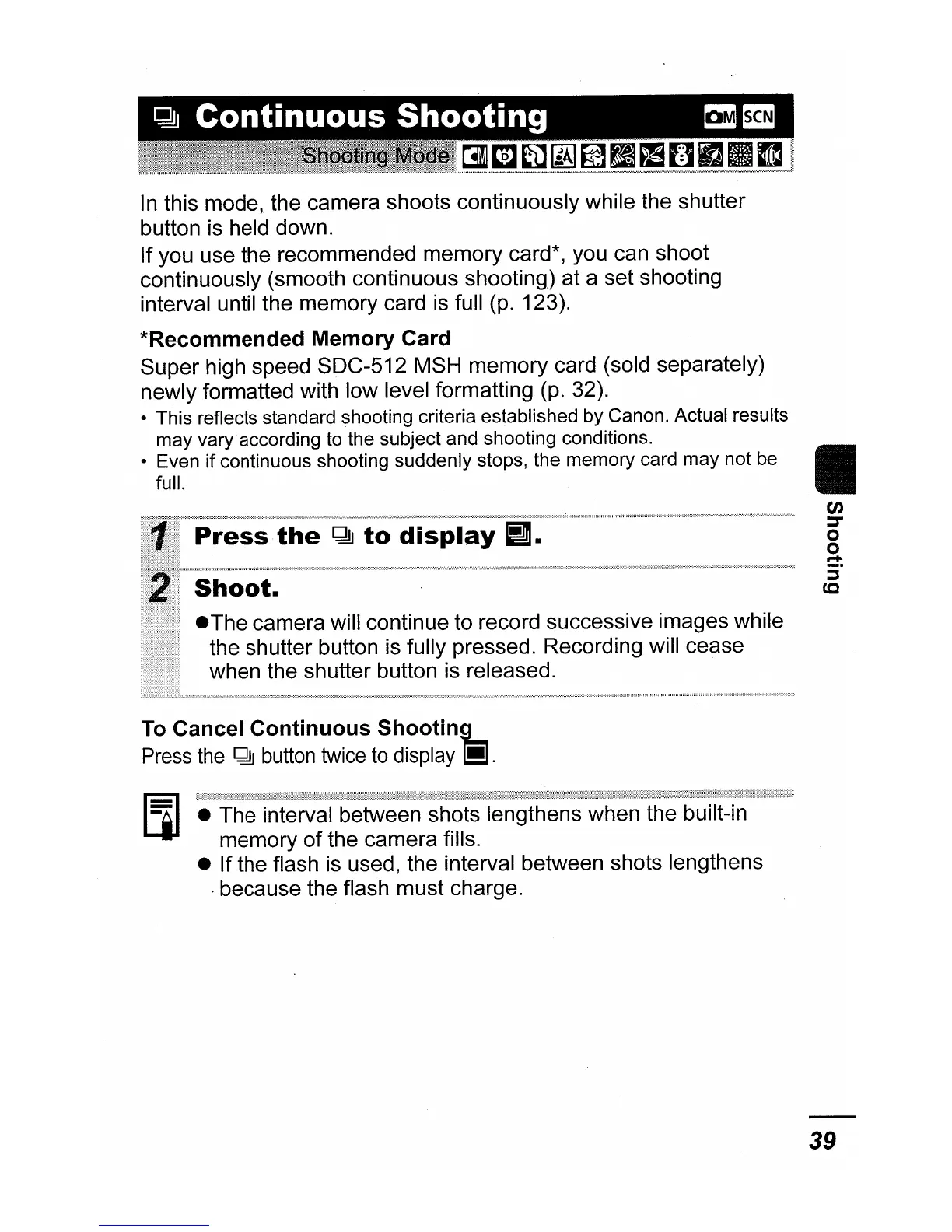 • Even if continuous shooting suddenly stops, the memory card may not