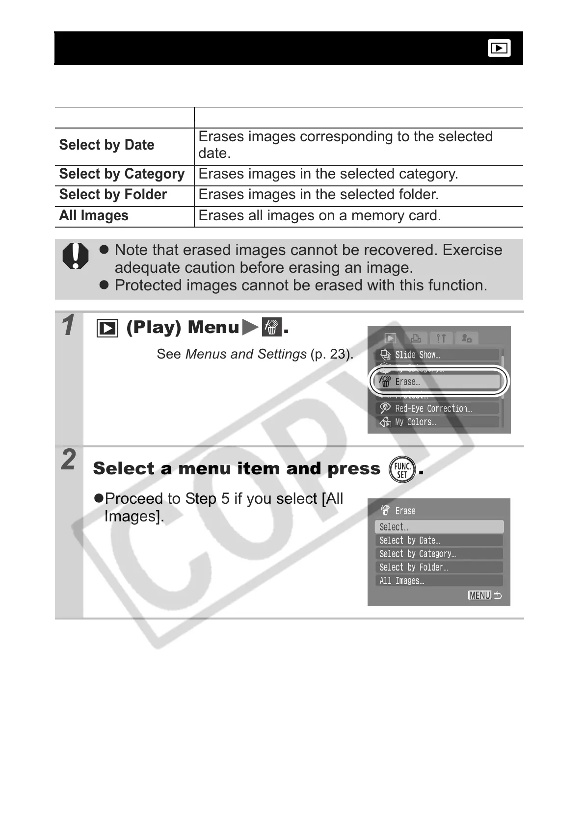 z Protected images cannot be erased with this function.