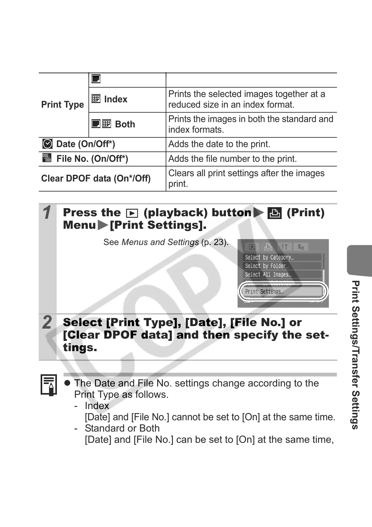 [Date] and [File No.] cannot be set to [On] at the same time.