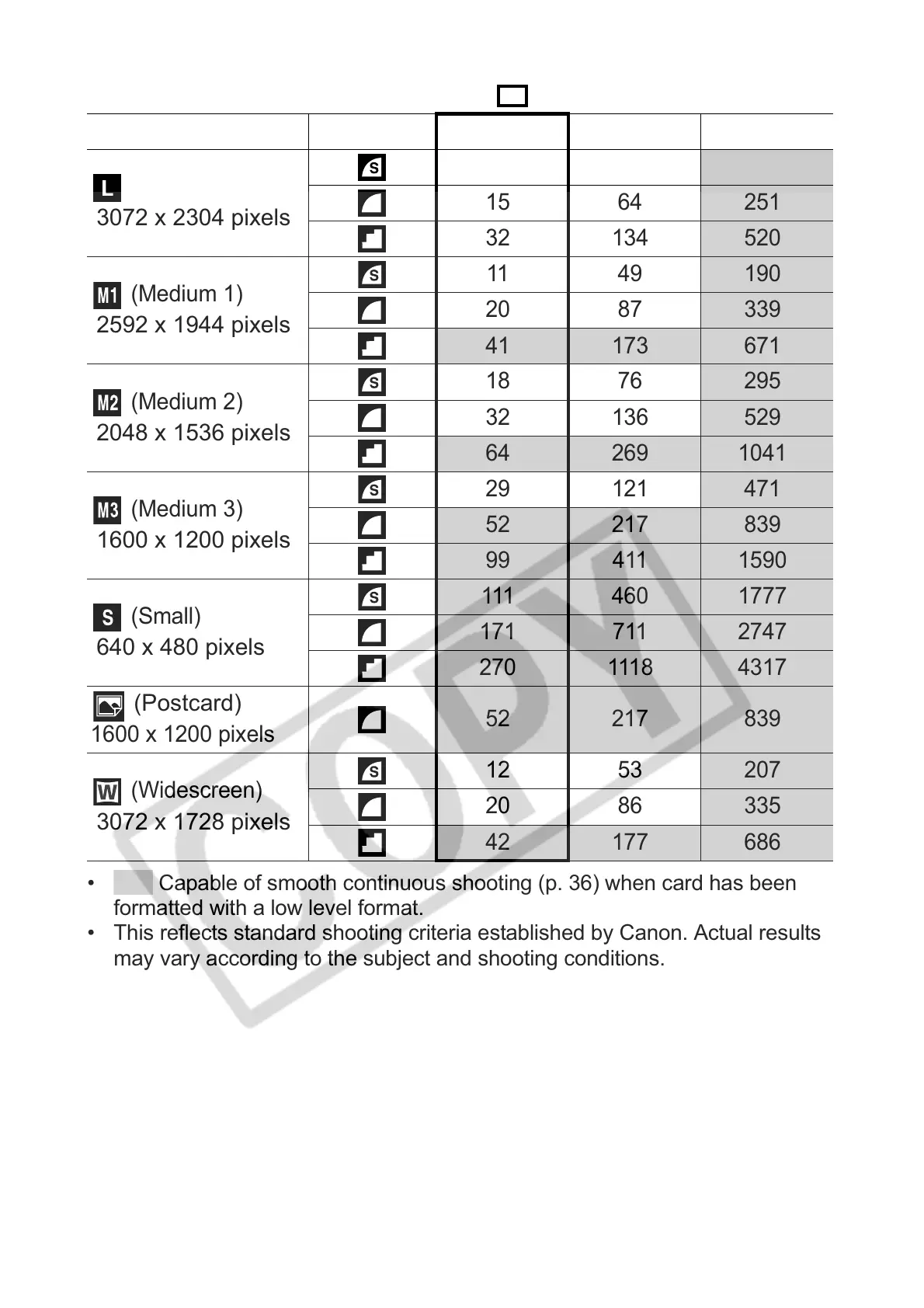 • Capable of smooth continuous shooting (p. 36) when card has been
