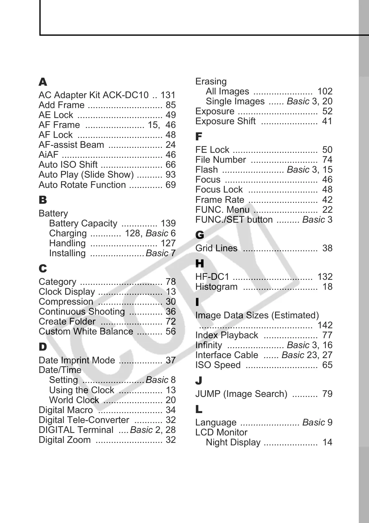 AC Adapter Kit ACK-DC10 .. 131