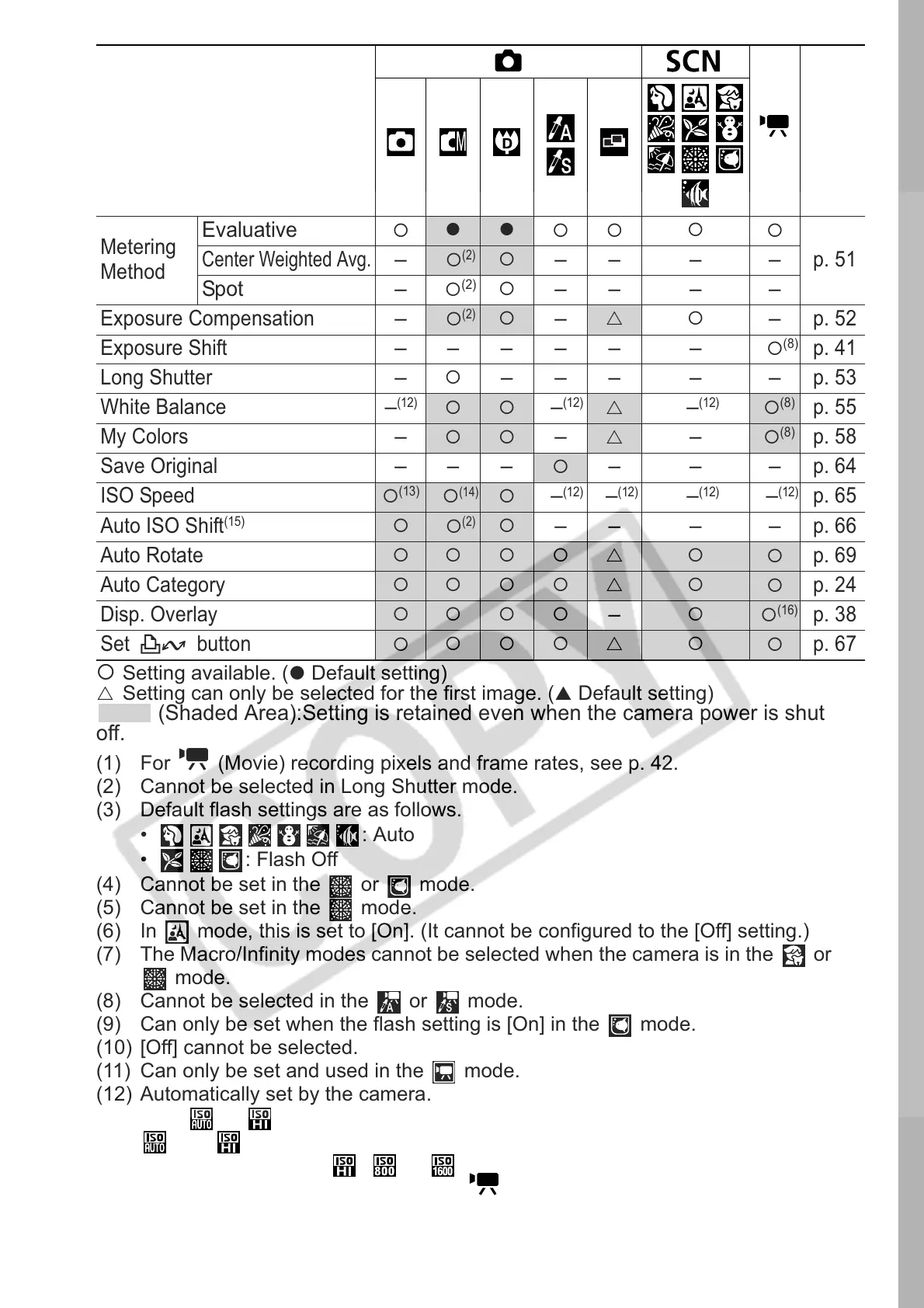(1) For (Movie) recording pixels and frame rates, see p. 42.