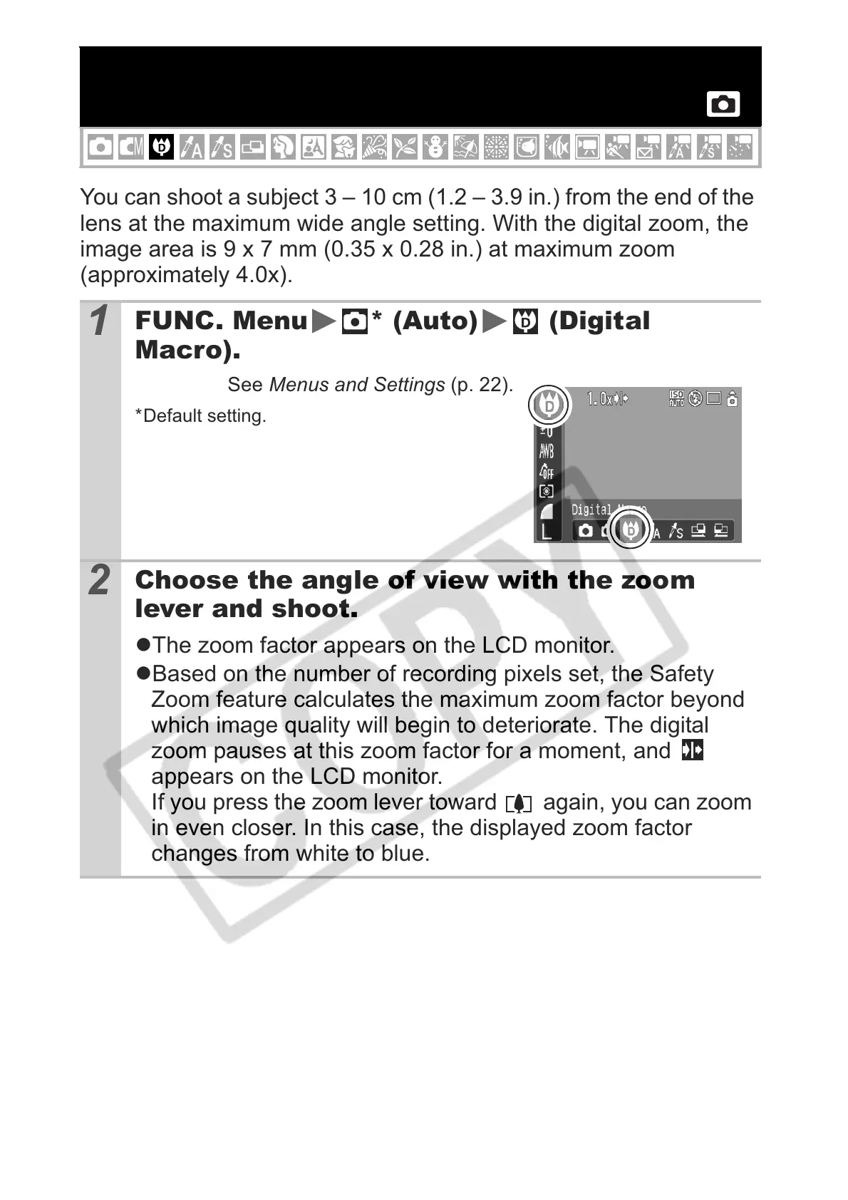 You can shoot a subject 3 ā 10 cm (1.2 ā 3.9 in.) from the end of the