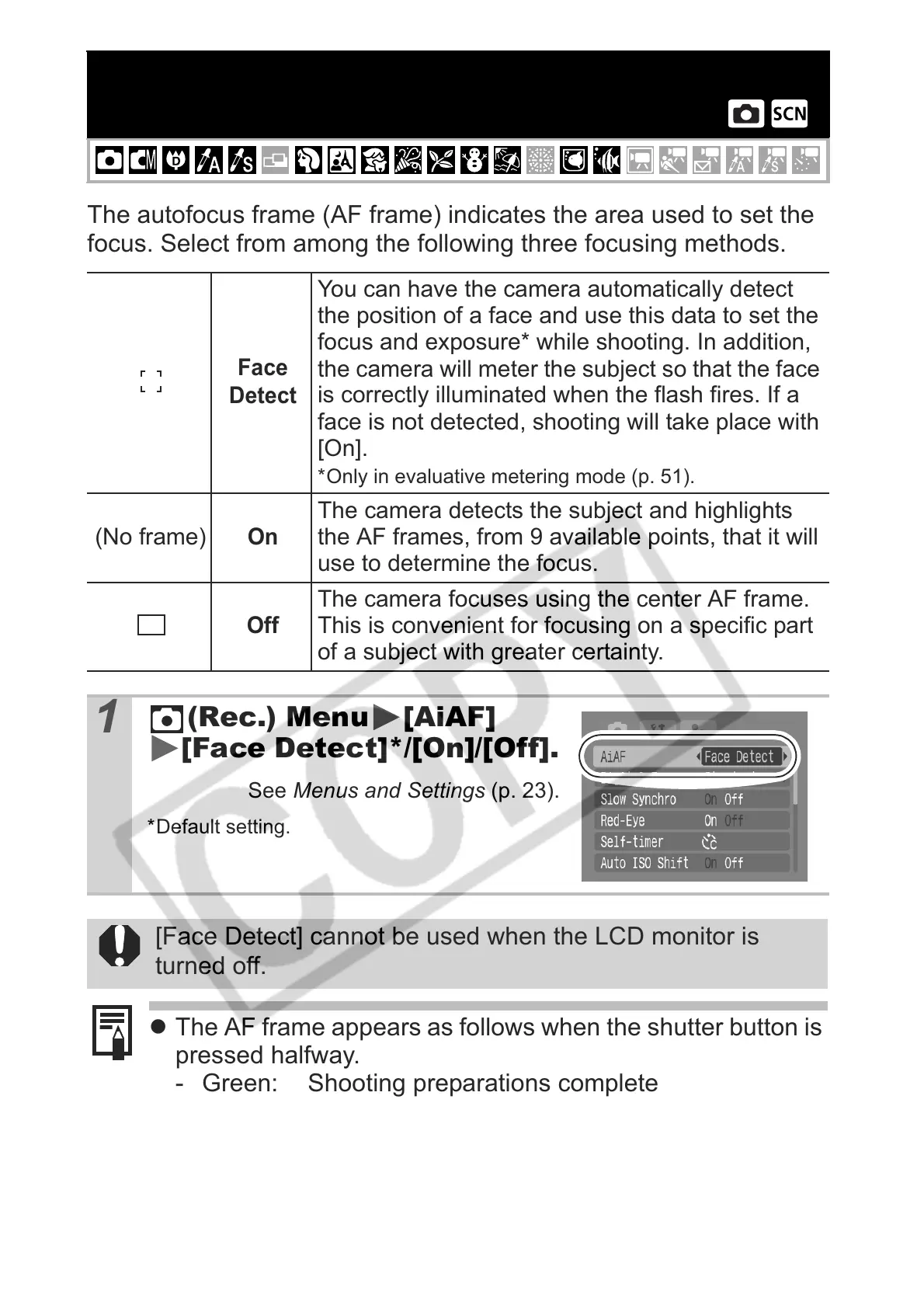 [Face Detect] cannot be used when the LCD monitor is